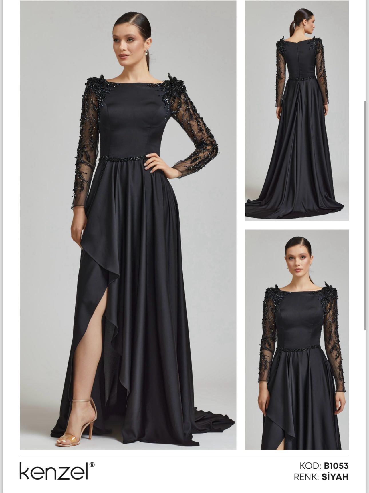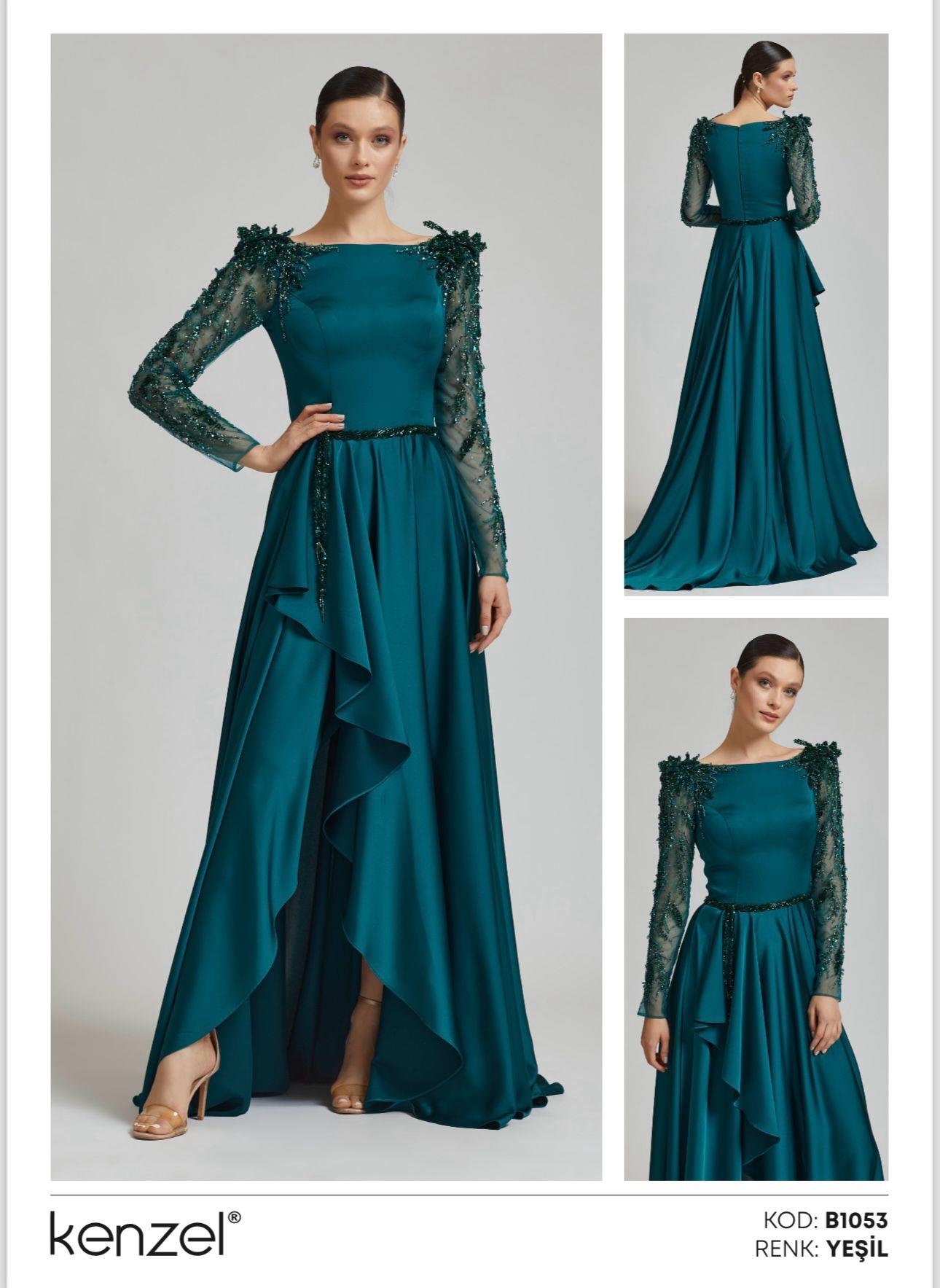 - Kenzel Kolları Otriş Detaylı Abiye Elbise-9021