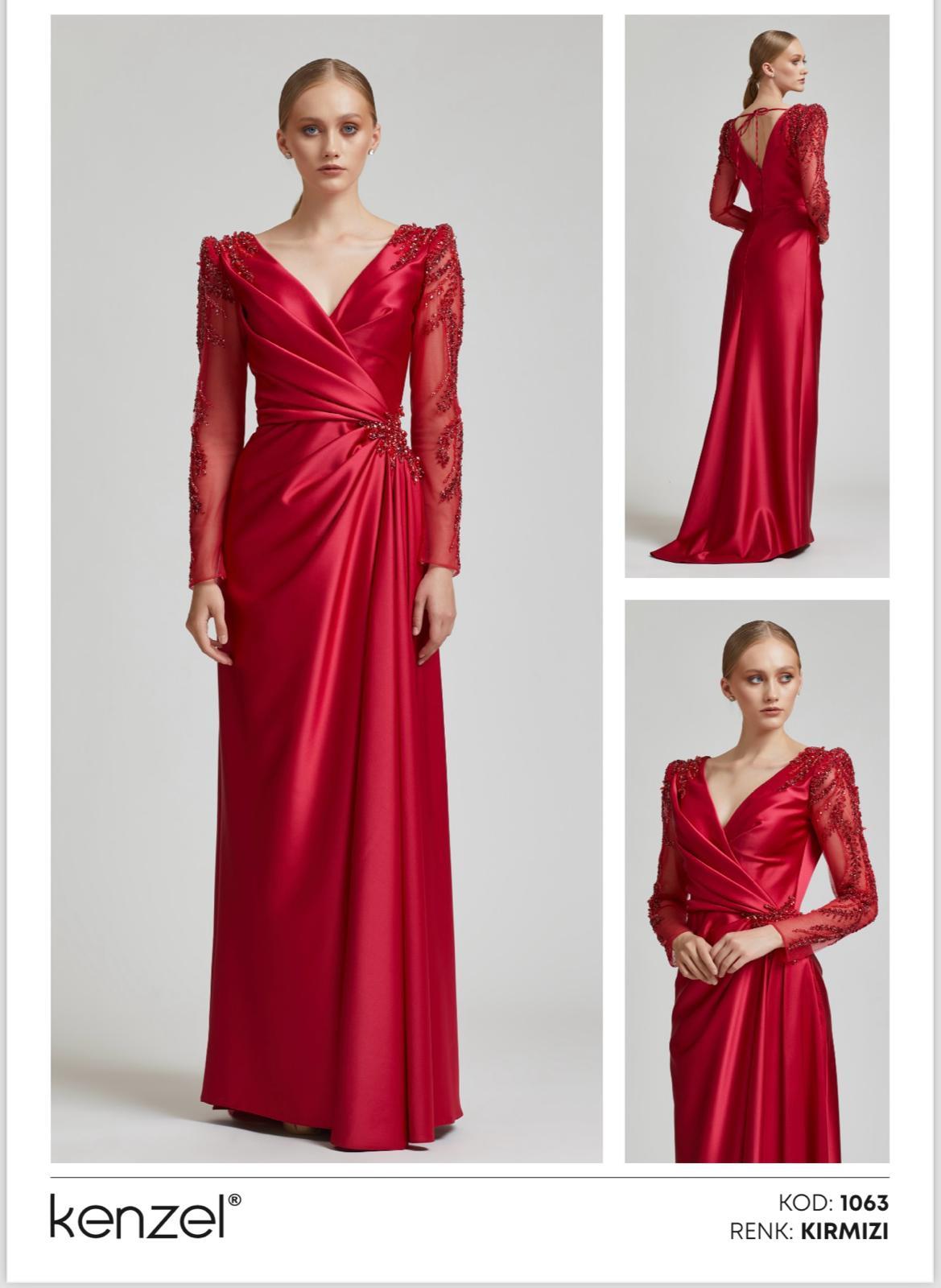 - Kenzel Kolları Otriş Detaylı Abiye Elbise-9021