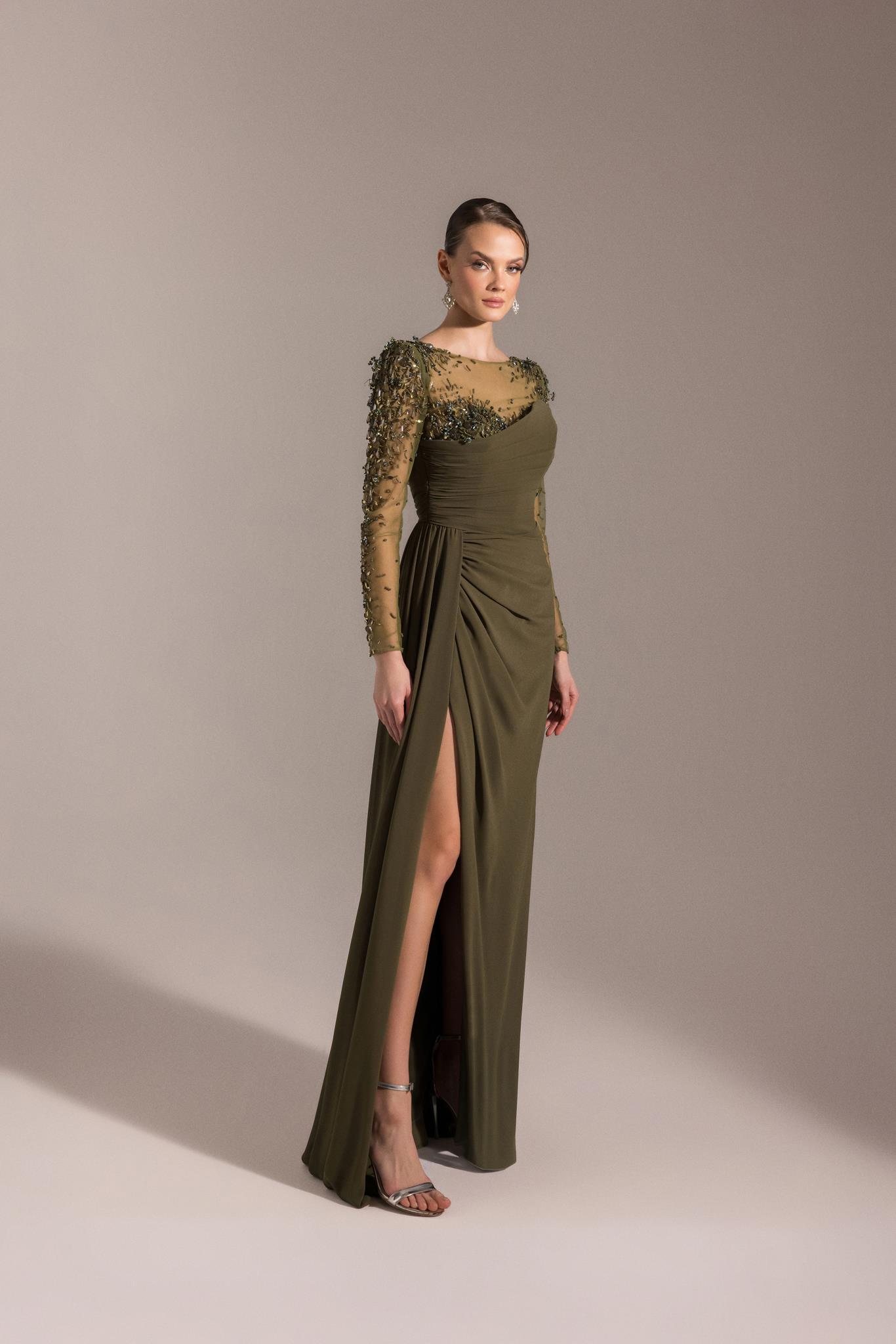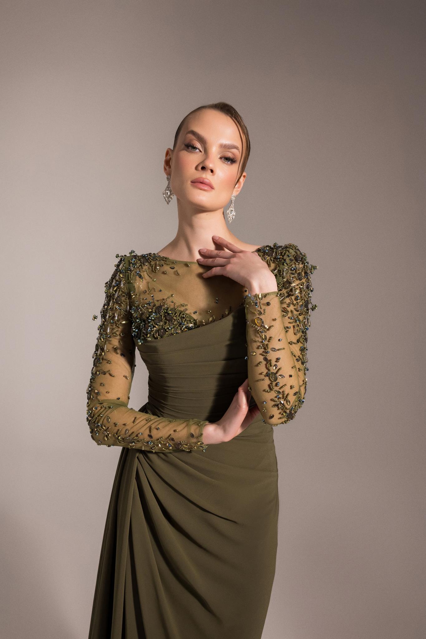 - Kenzel Kolları Otriş Detaylı Abiye Elbise-9021