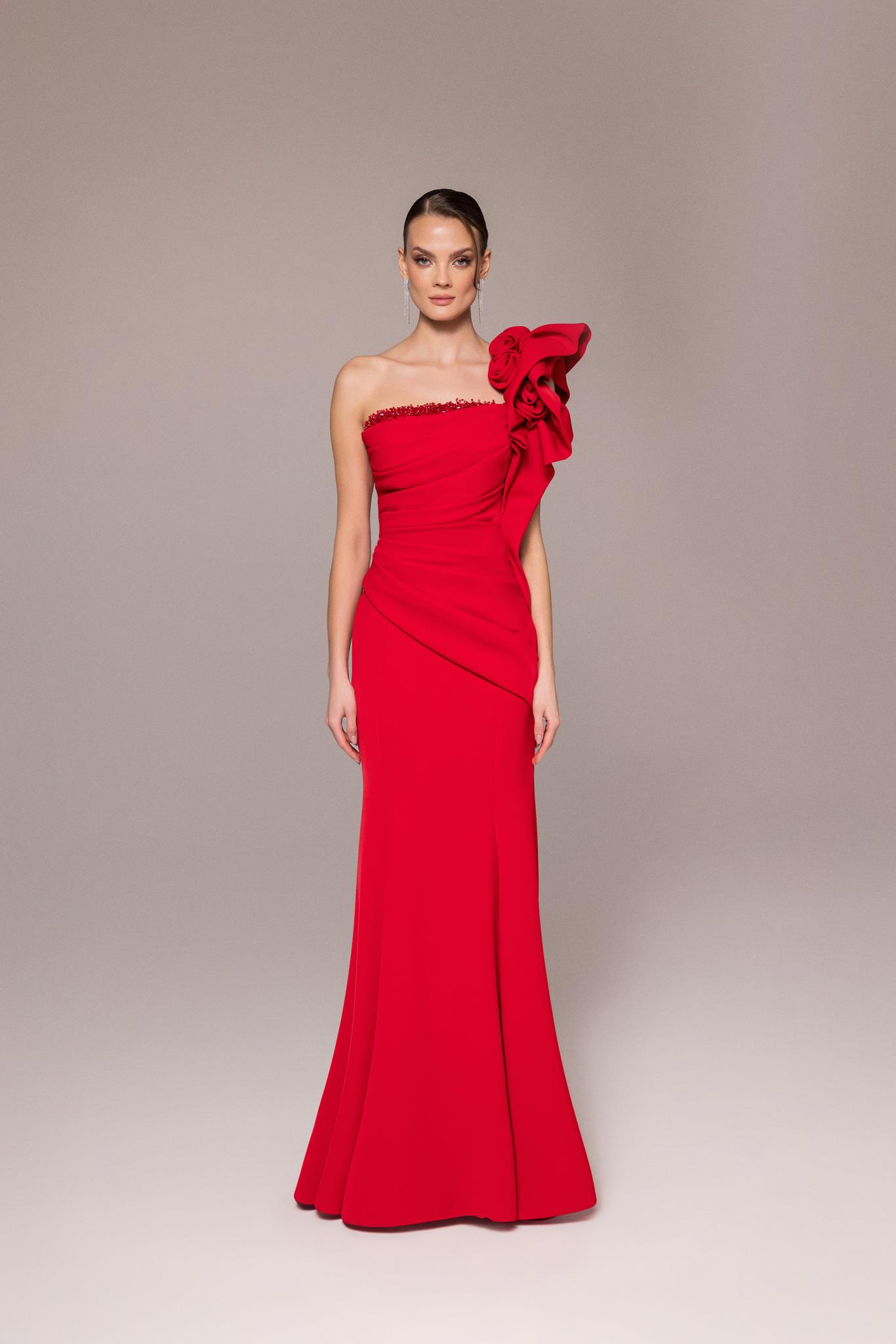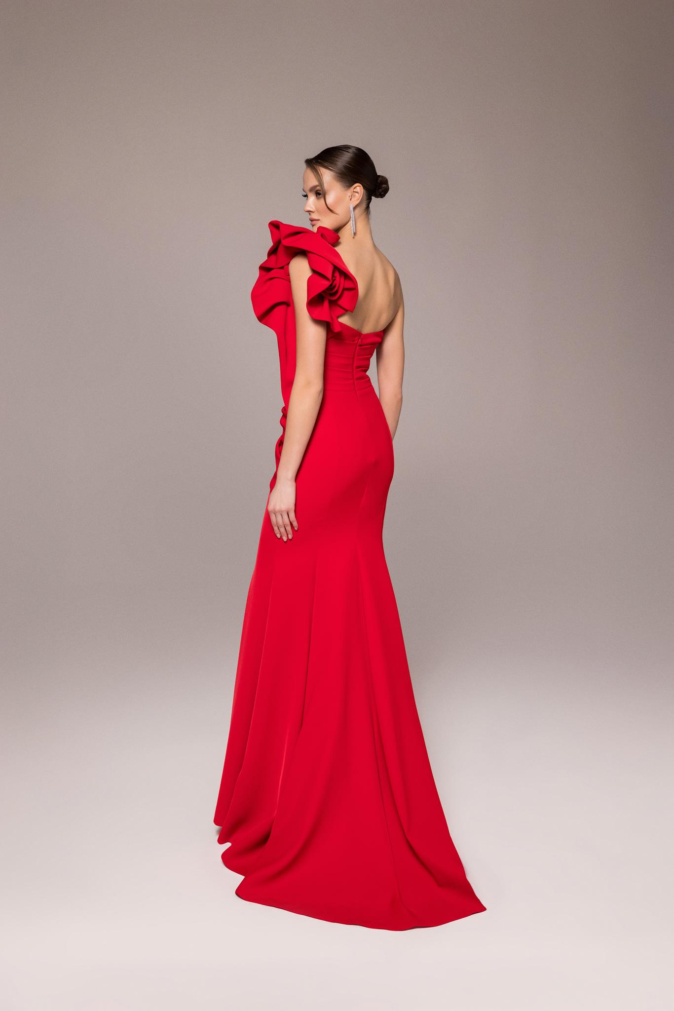 - Kenzel Tek Omuz Taş Detaylı Abiye Elbise-9119