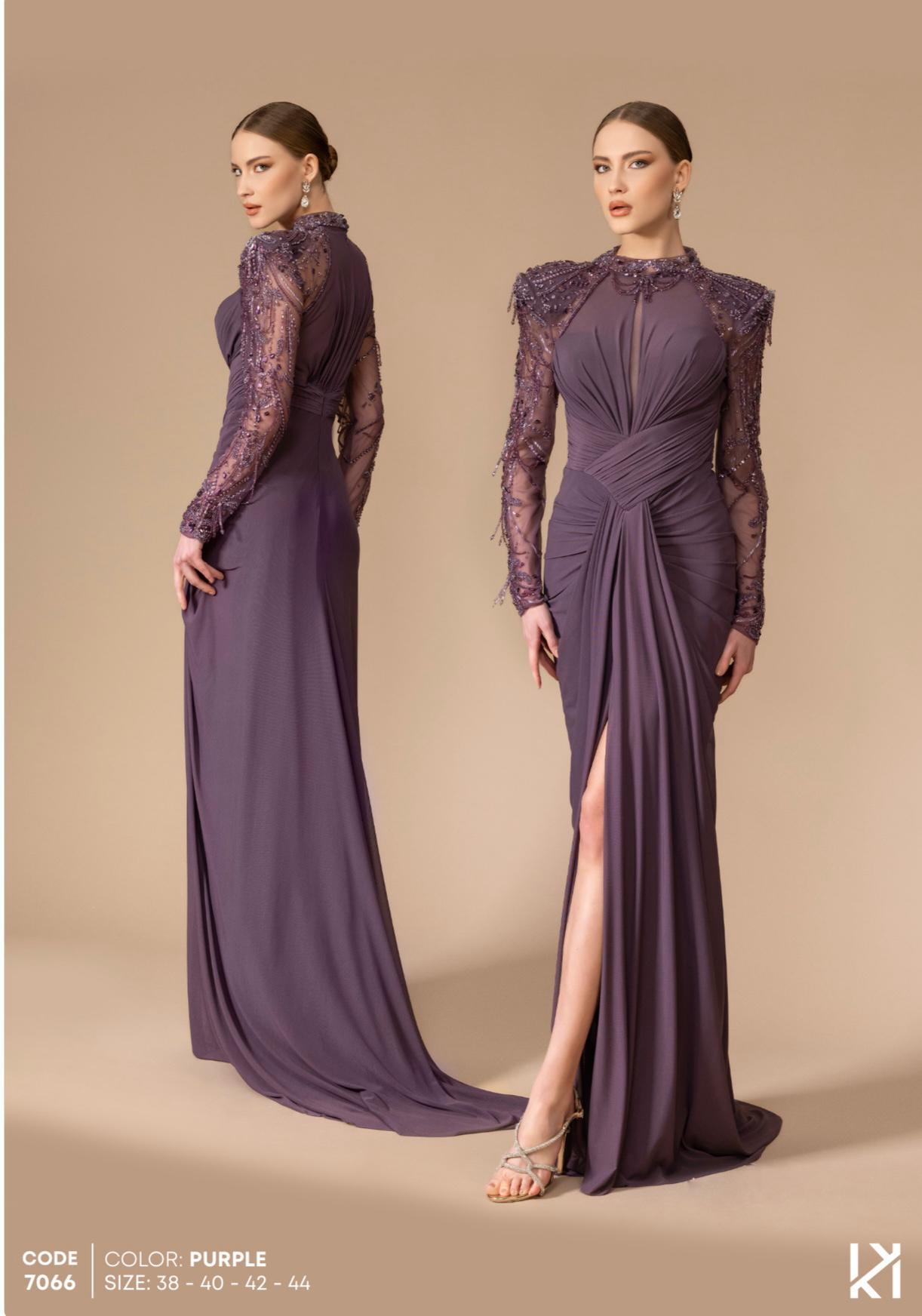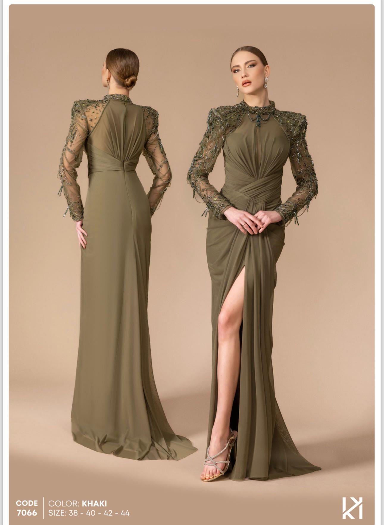 - Kenzel Kolları Otriş Detaylı Abiye Elbise-9021