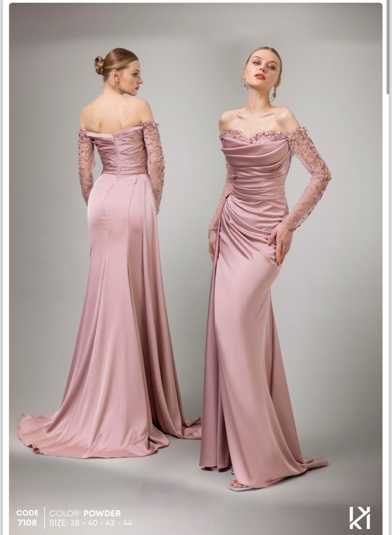 - Kenzel Kolları Otriş Detaylı Abiye Elbise-9021