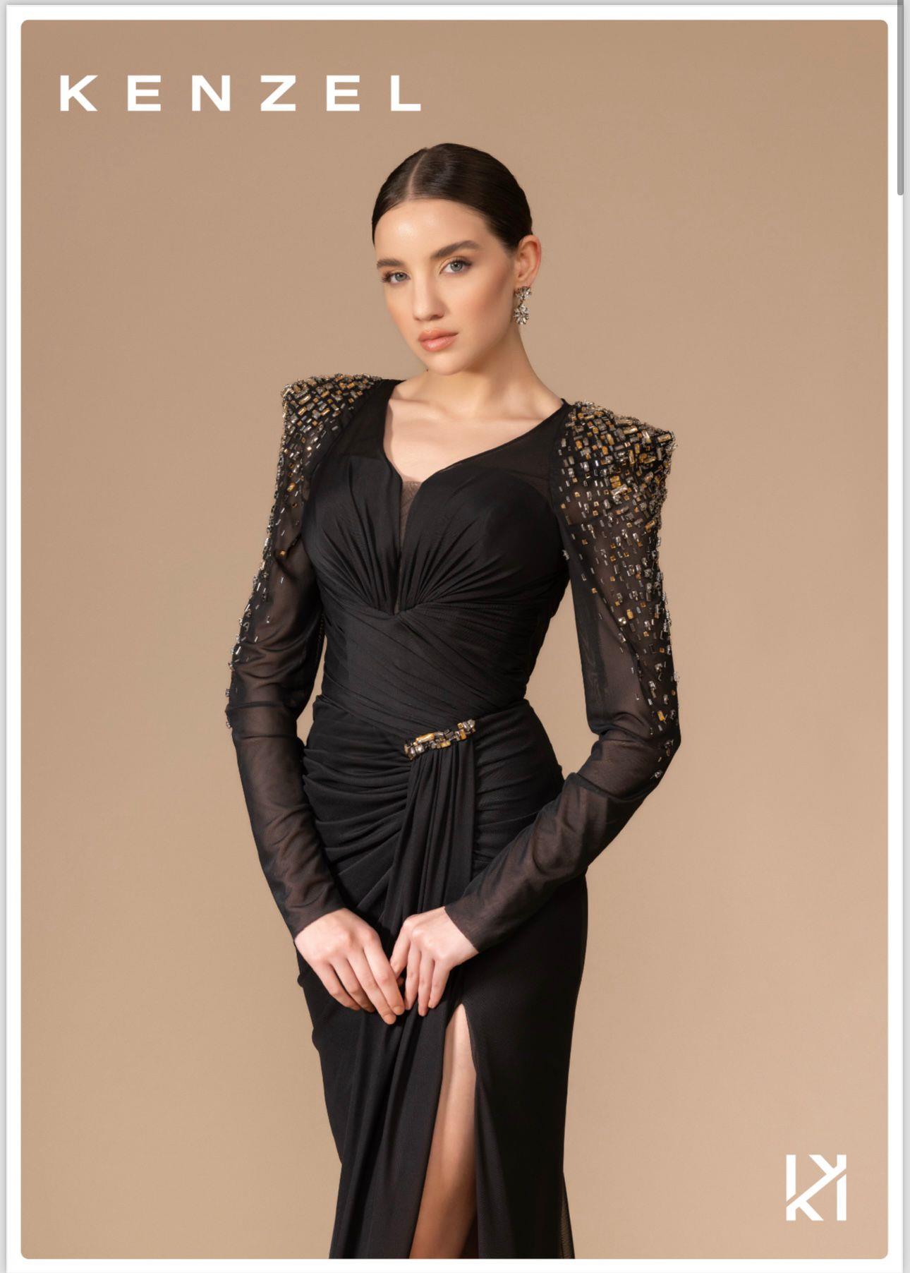 - Kenzel Kolları Otriş Detaylı Abiye Elbise-9021