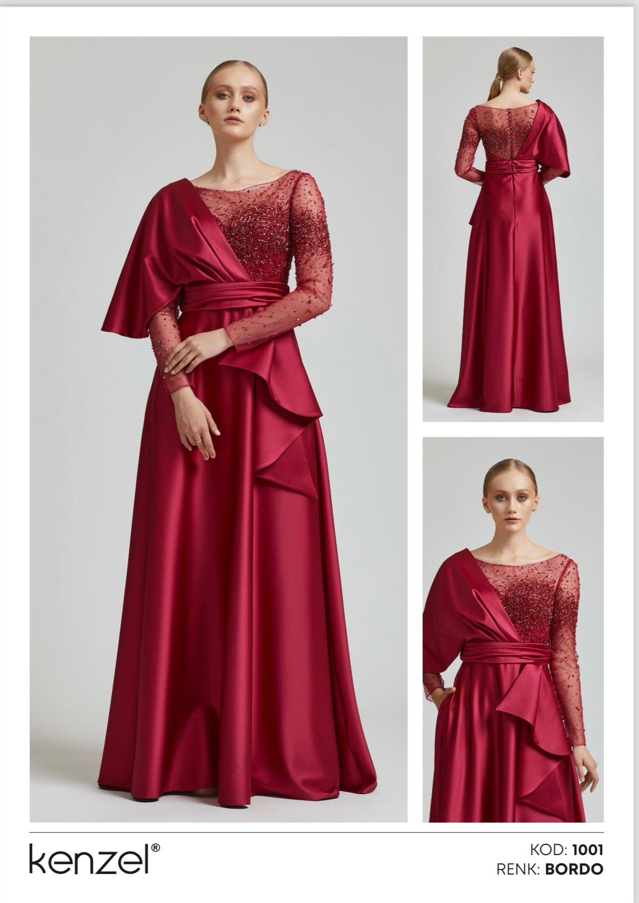 - Kenzel Yaka Detaylı Abiye Elbise-1001