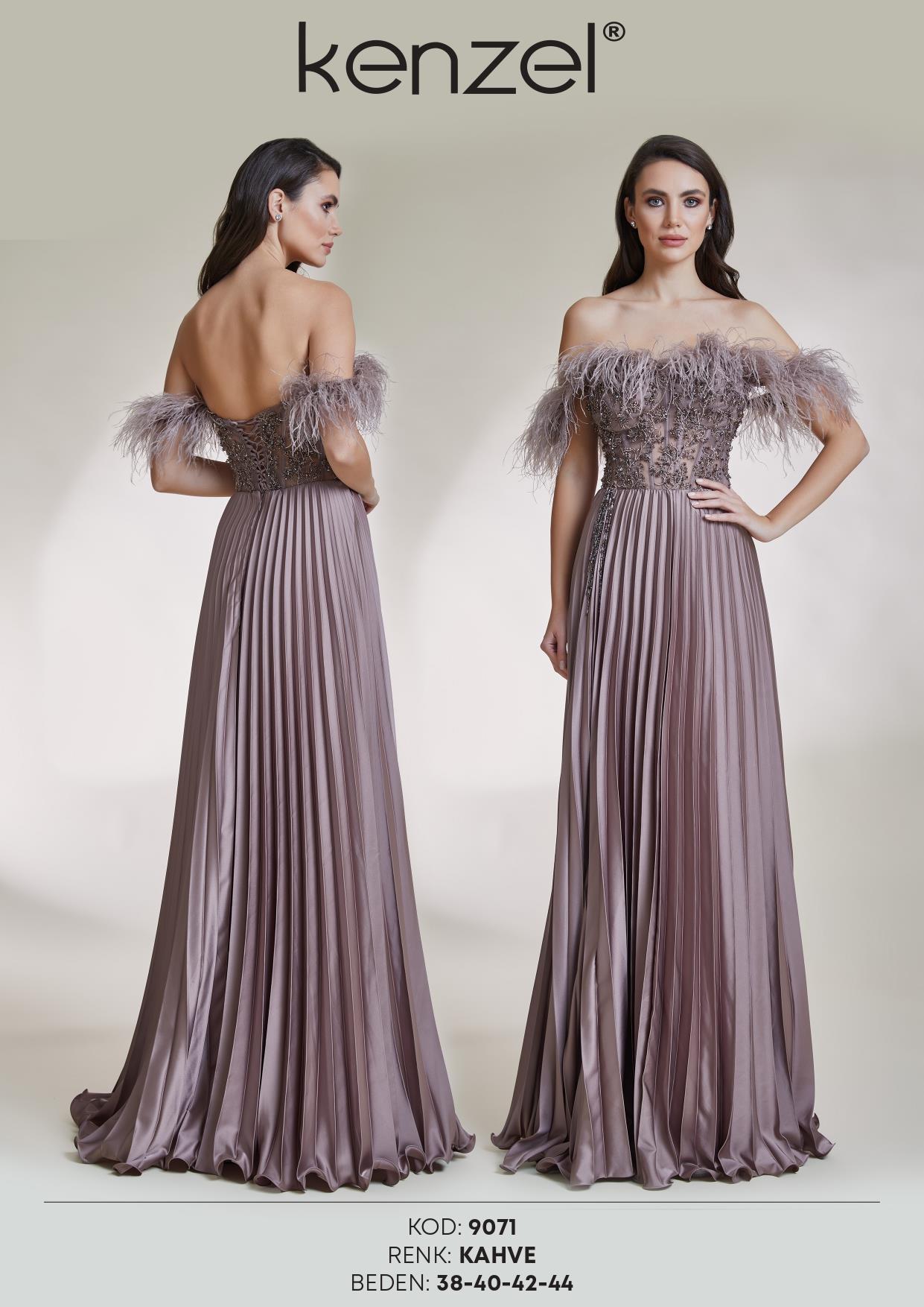 Kenzel Yaka Otriş Detaylı Piliseli Abiye Elbise-9071