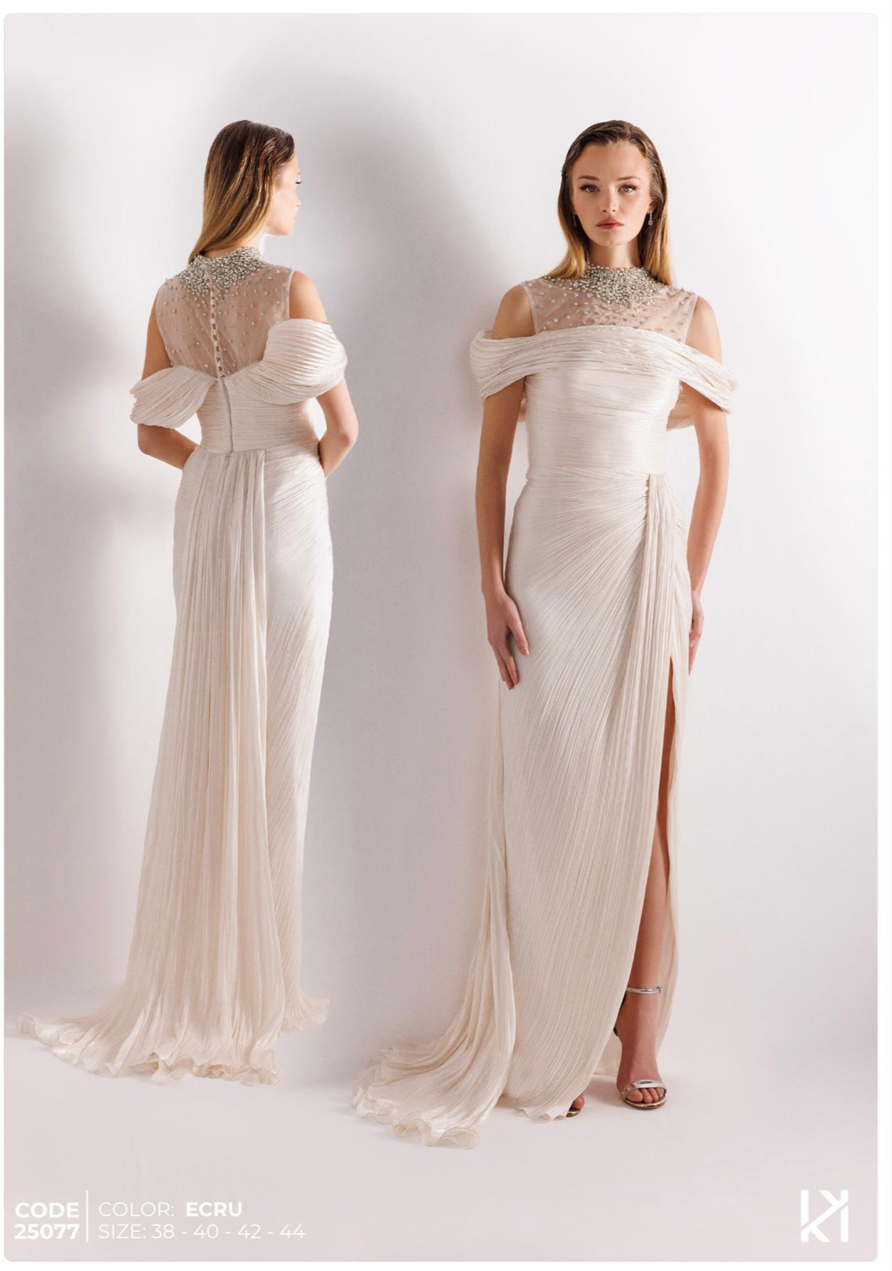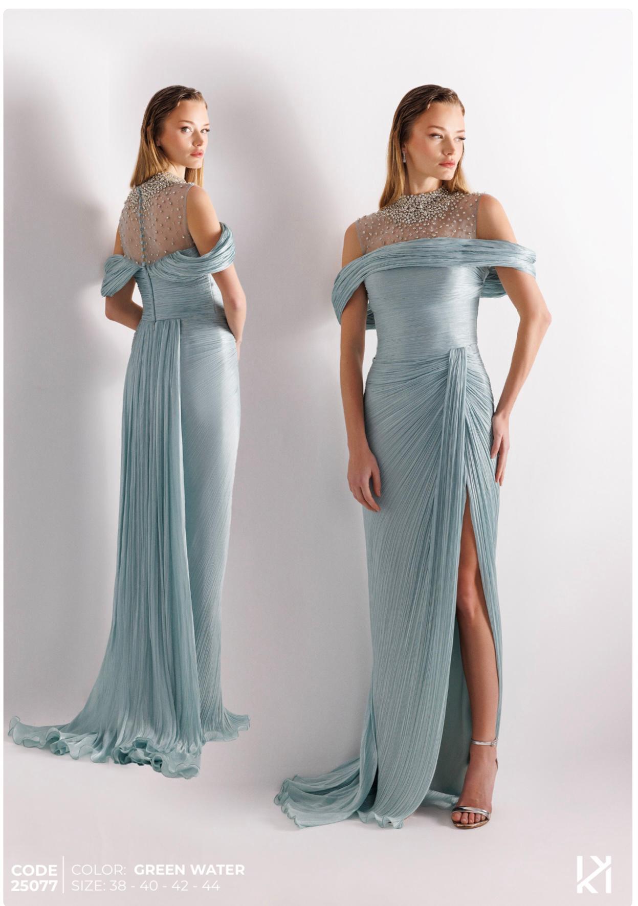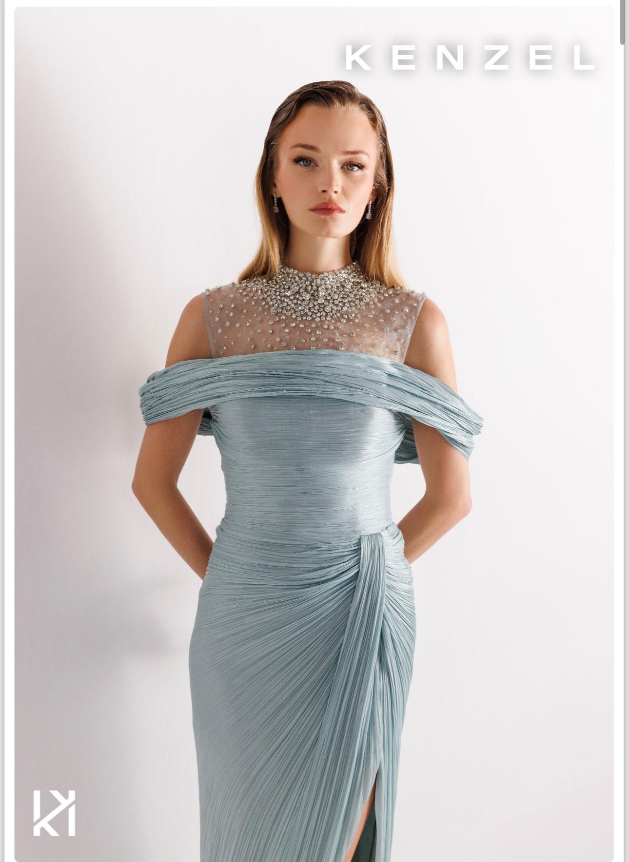 - Kenzel Kolları Otriş Detaylı Abiye Elbise-9021