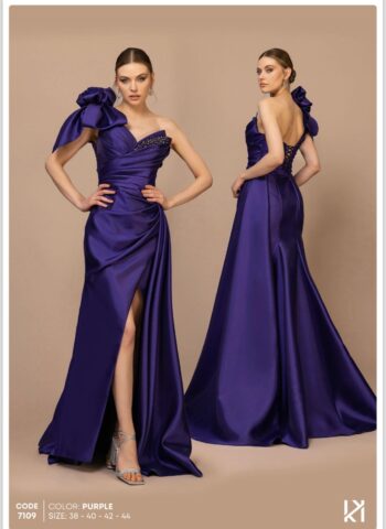 - Kenzel Tek Omuz Taş Detaylı Abiye Elbise-9119