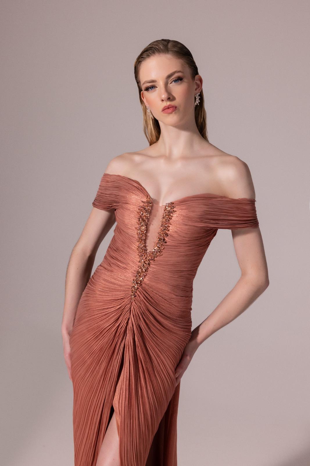 - Kenzel Kolları Otriş Detaylı Abiye Elbise-9021