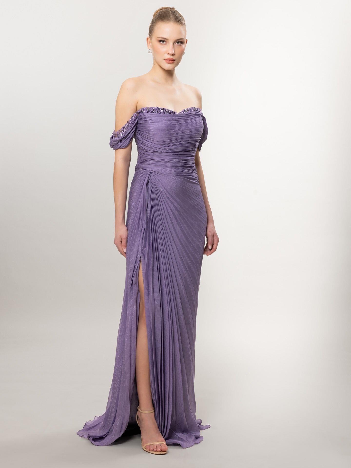- Kenzel Otriş Detaylı Abiye Elbise-9056