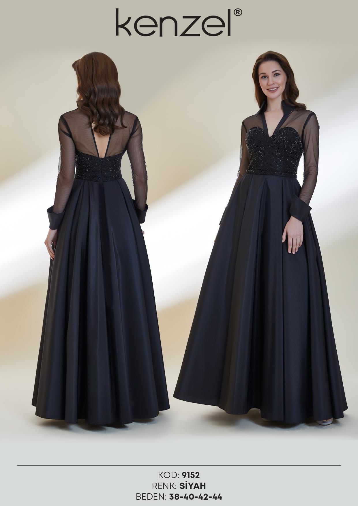 Kenzel Yaka ve Kol Detaylı Abiye Elbise-9152