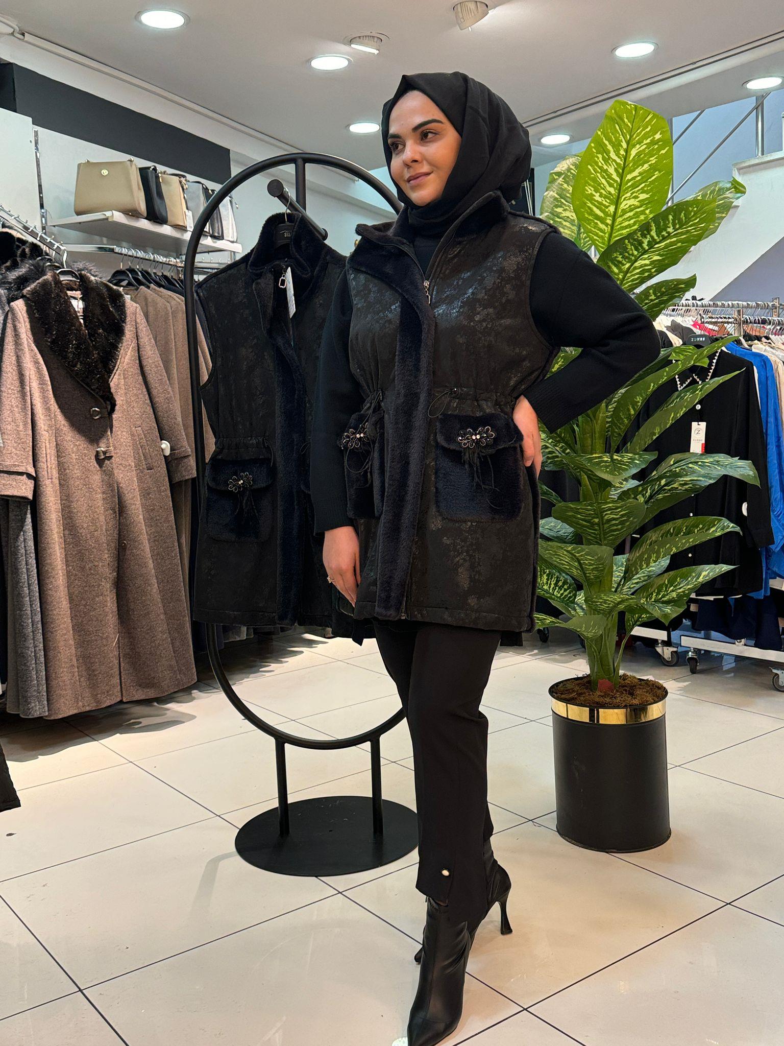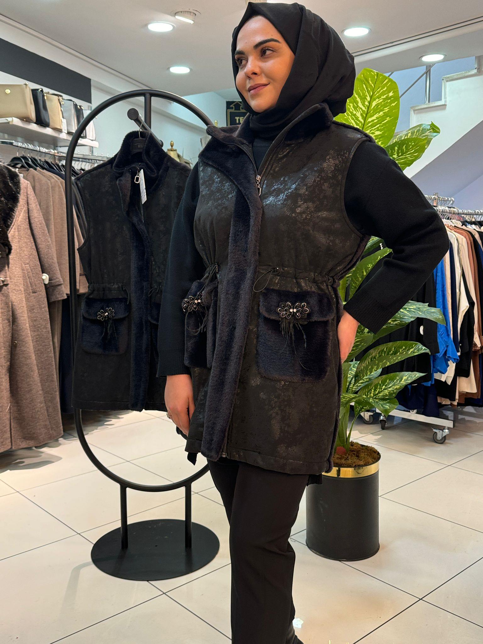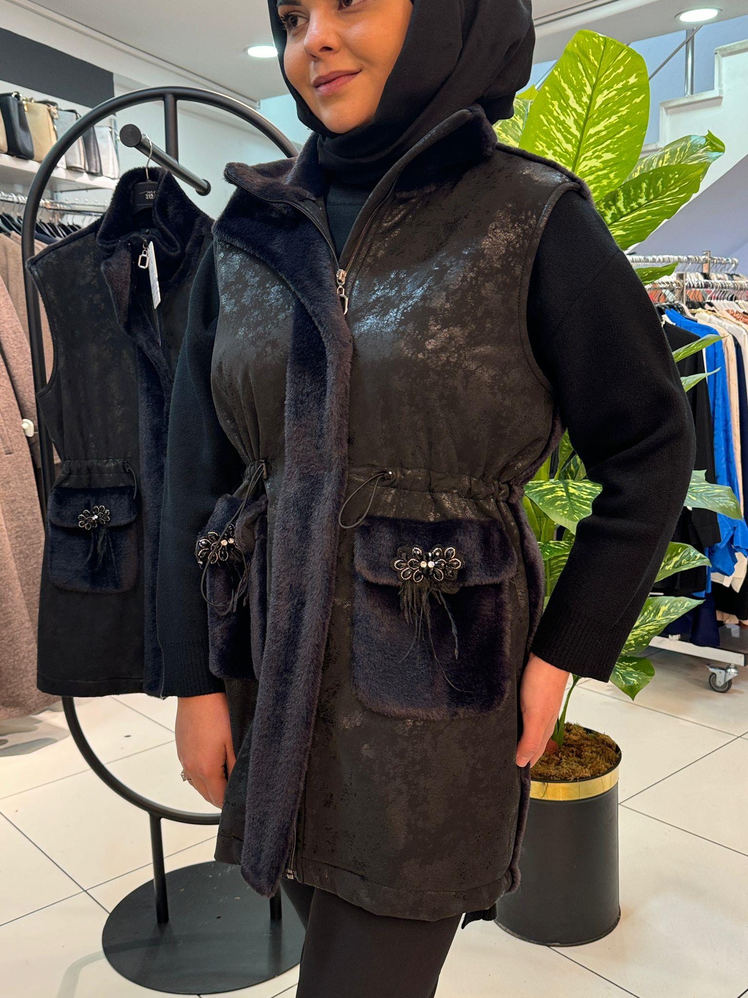 MY 312 Arkası Kürk Detaylı Yelek-9305