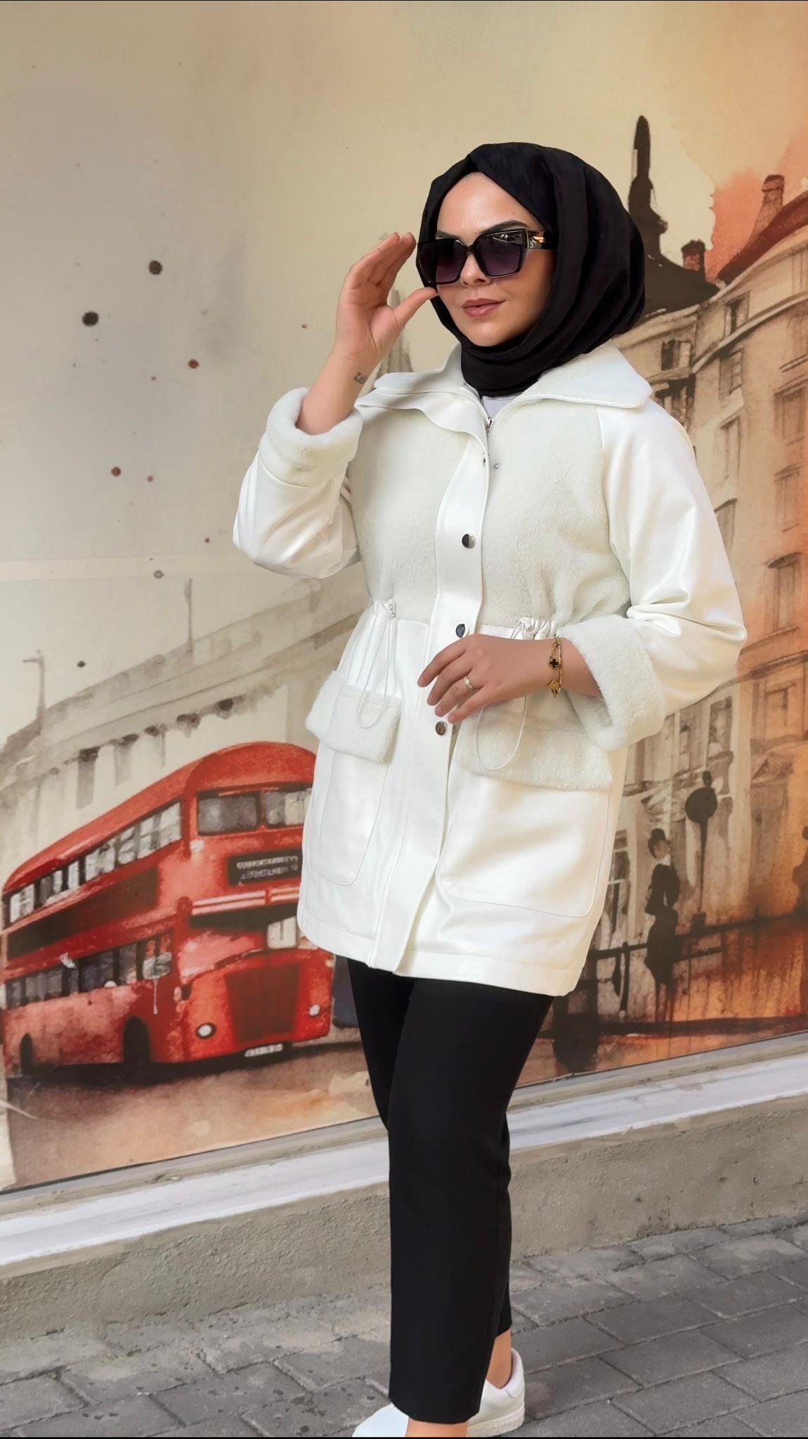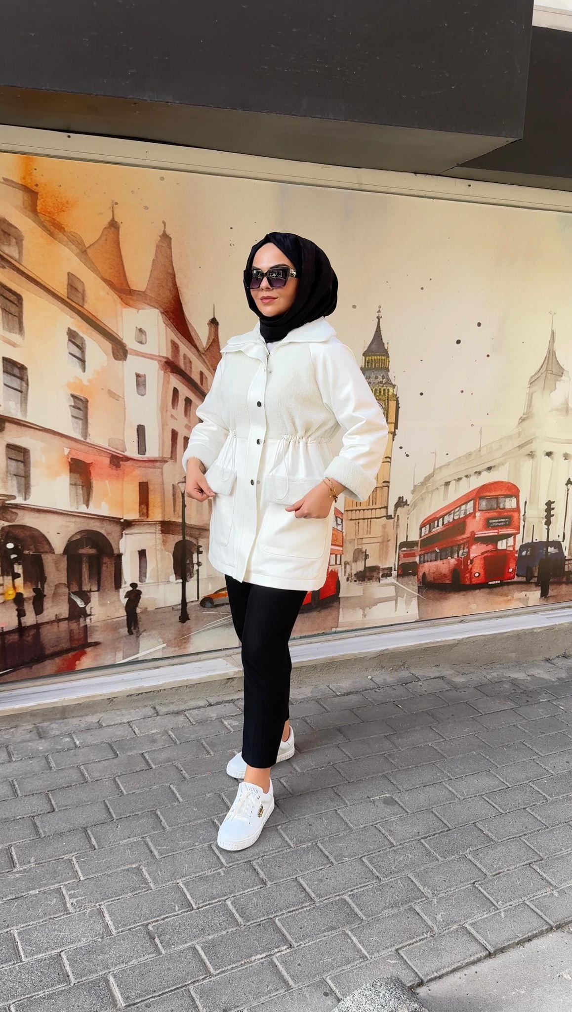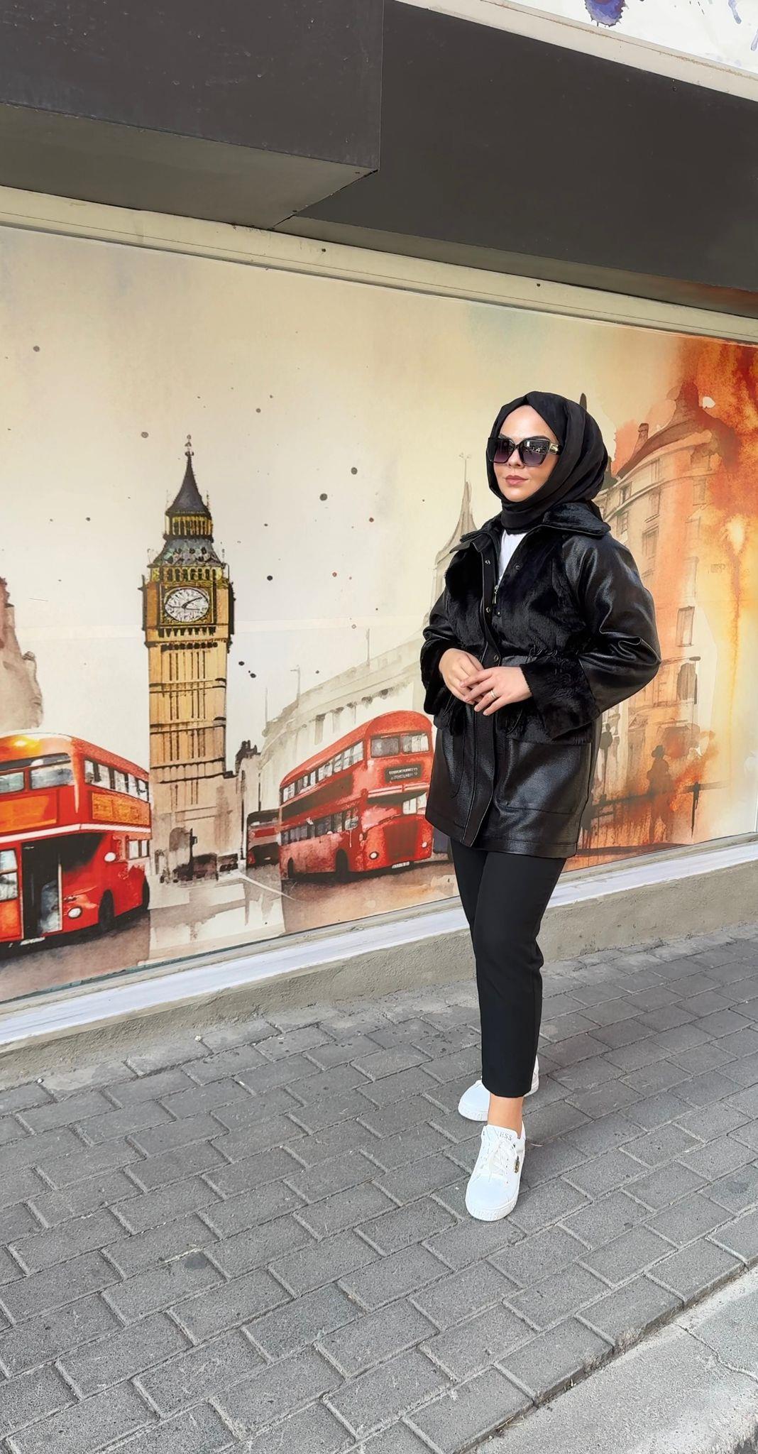 - Zühre Yaka Kürk Detaylı Deri Kap-13527