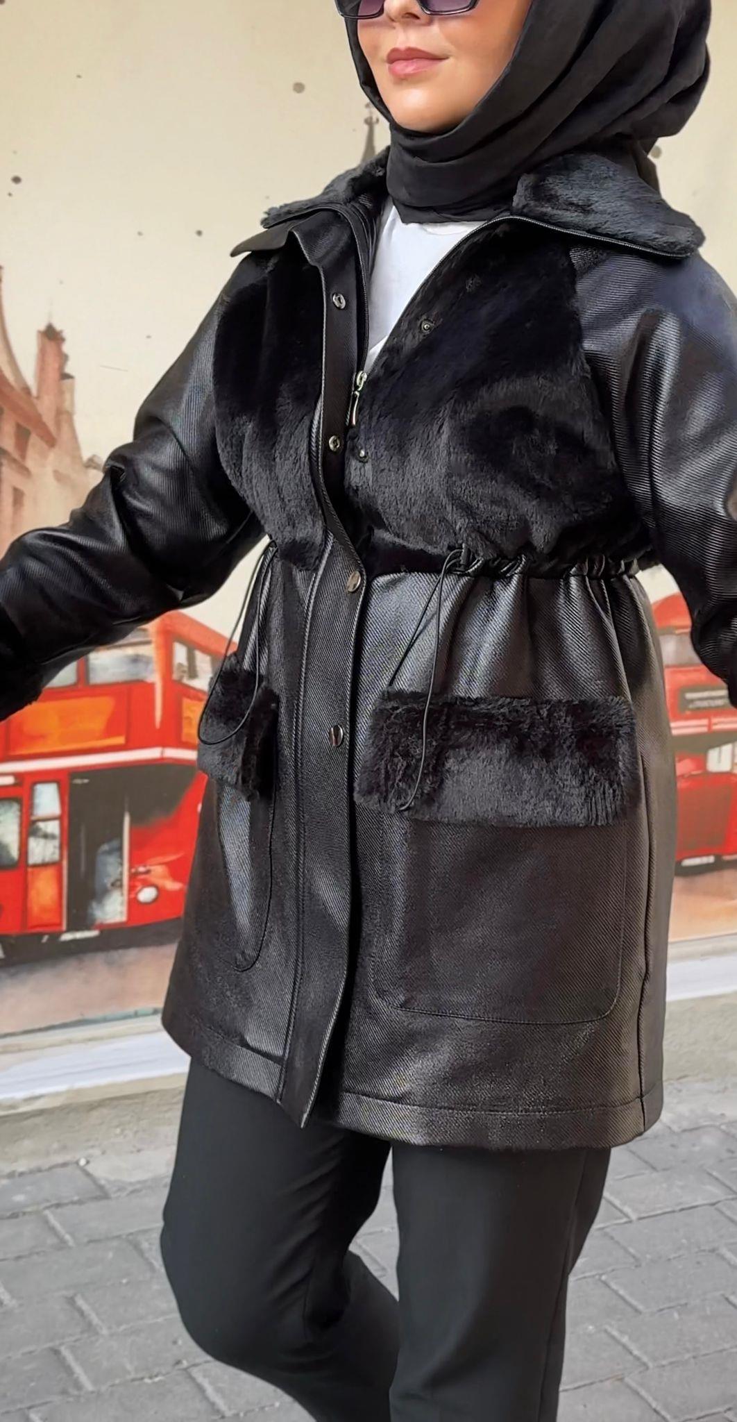MY 312 Kürklü Derili Kaban-7304