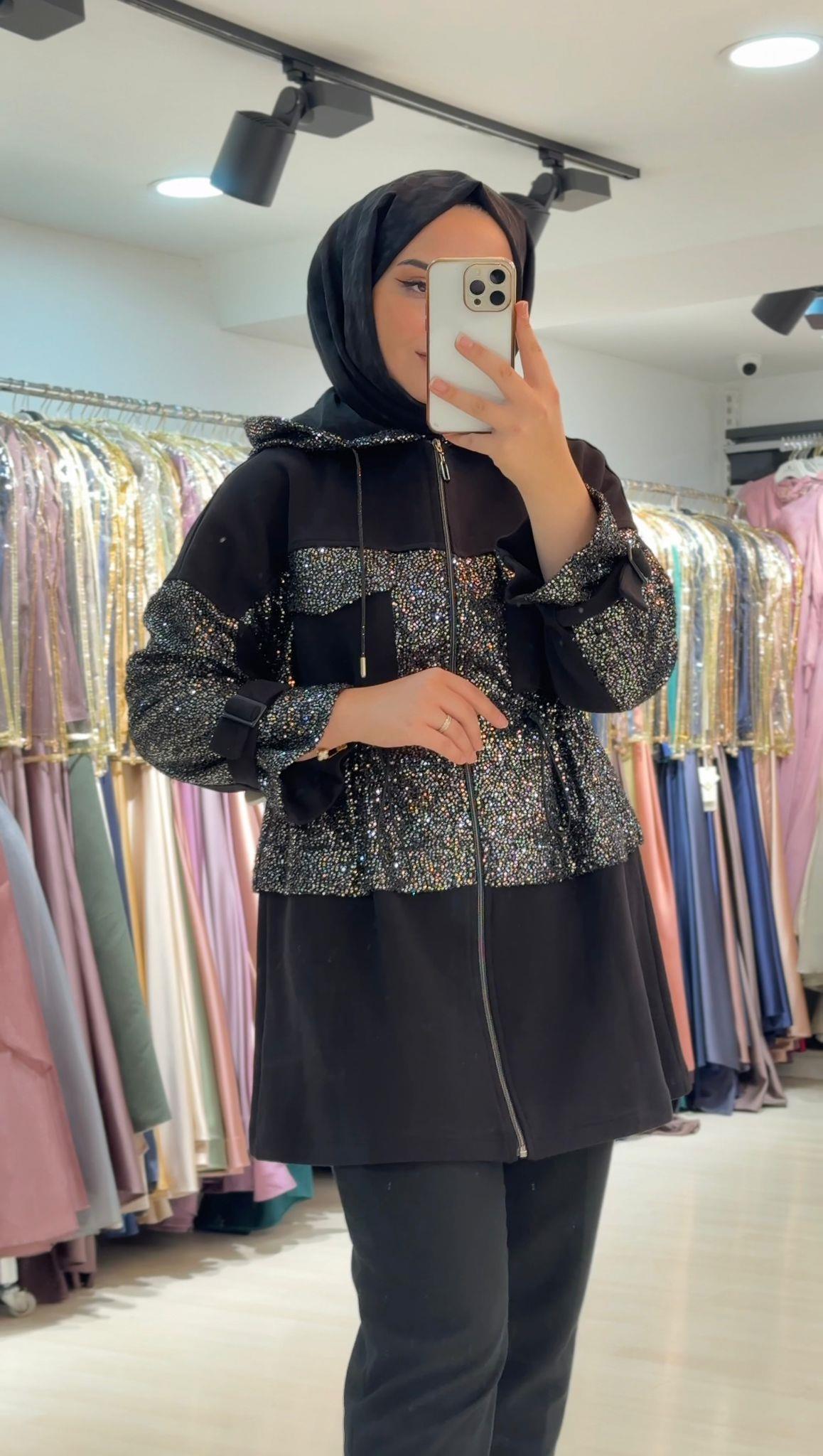 - My312 Yaka Taş Detaylı Pantolonlu Takım-1545