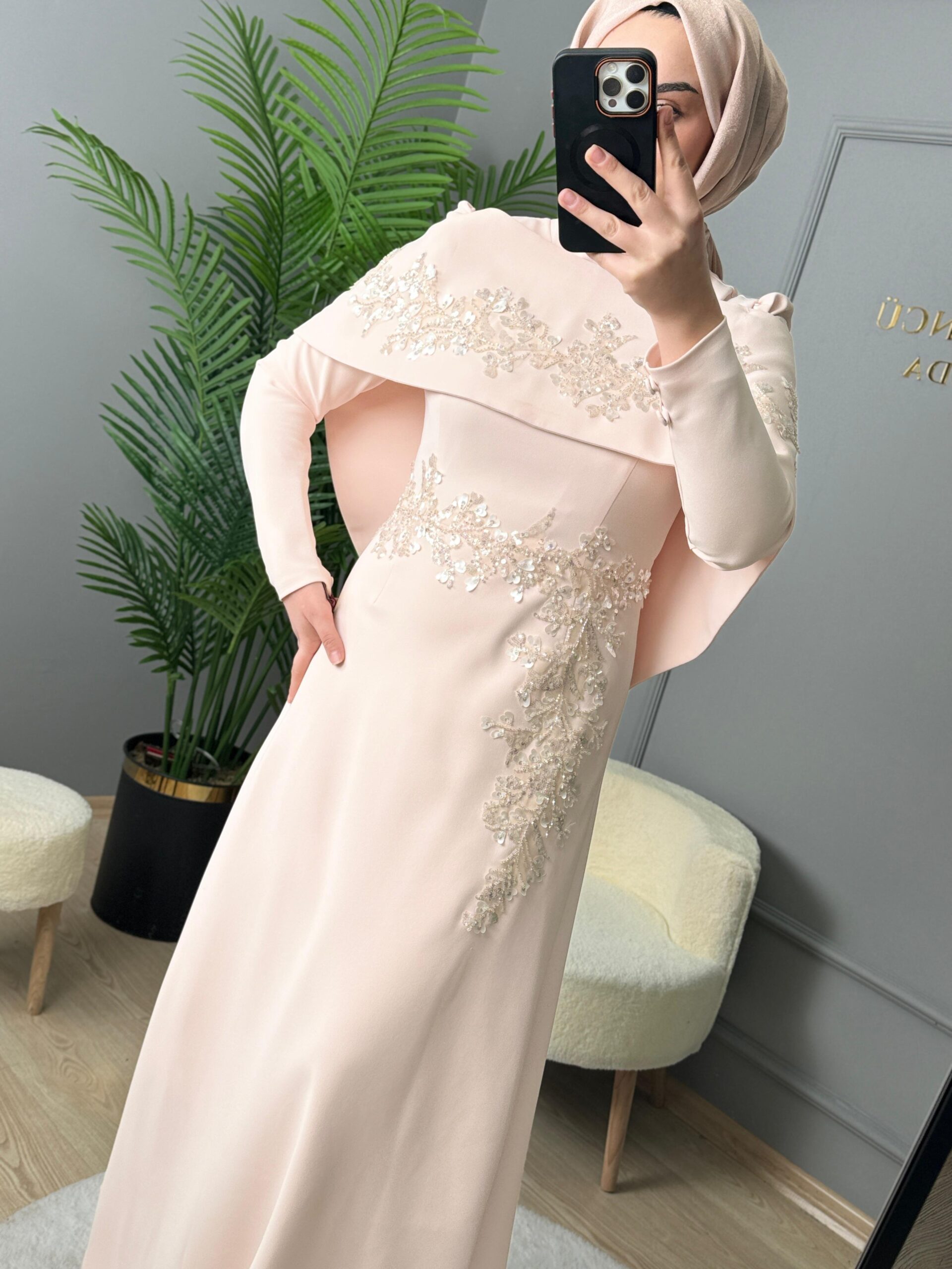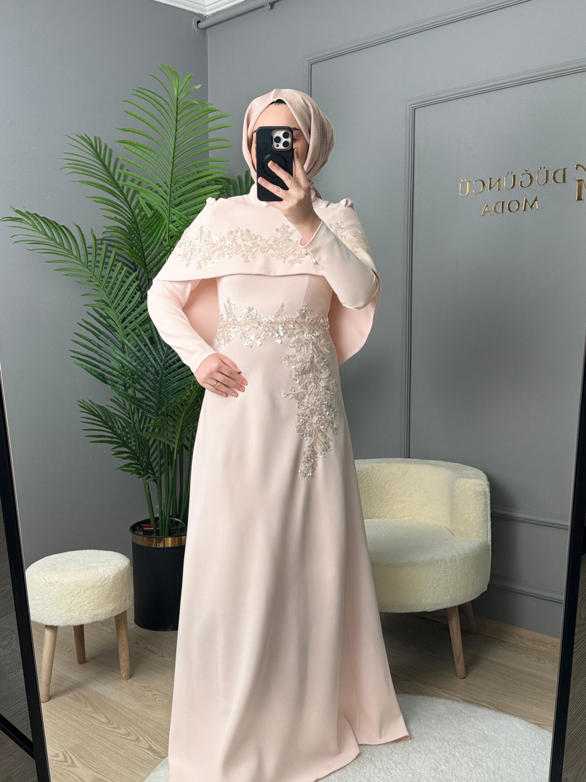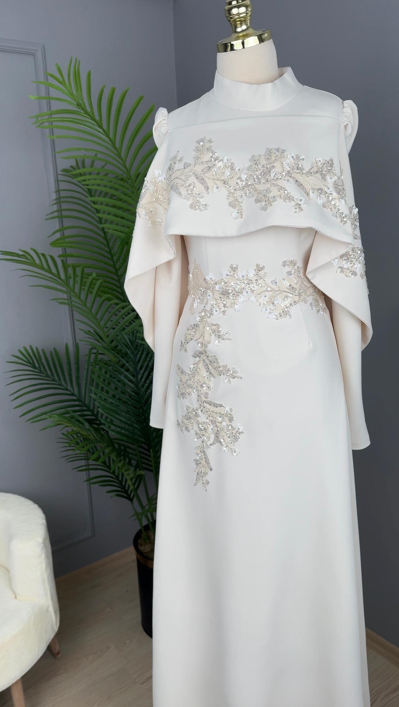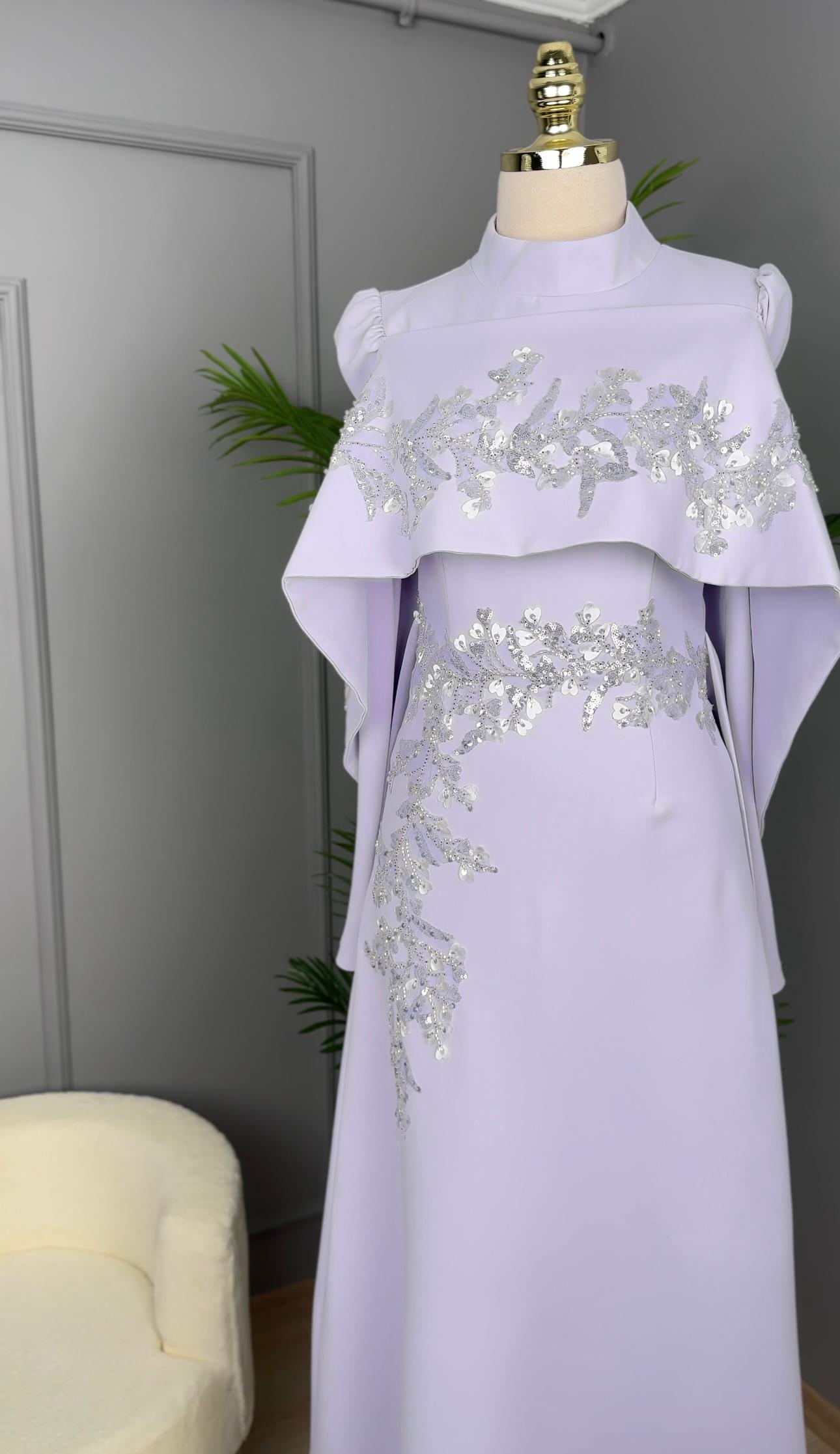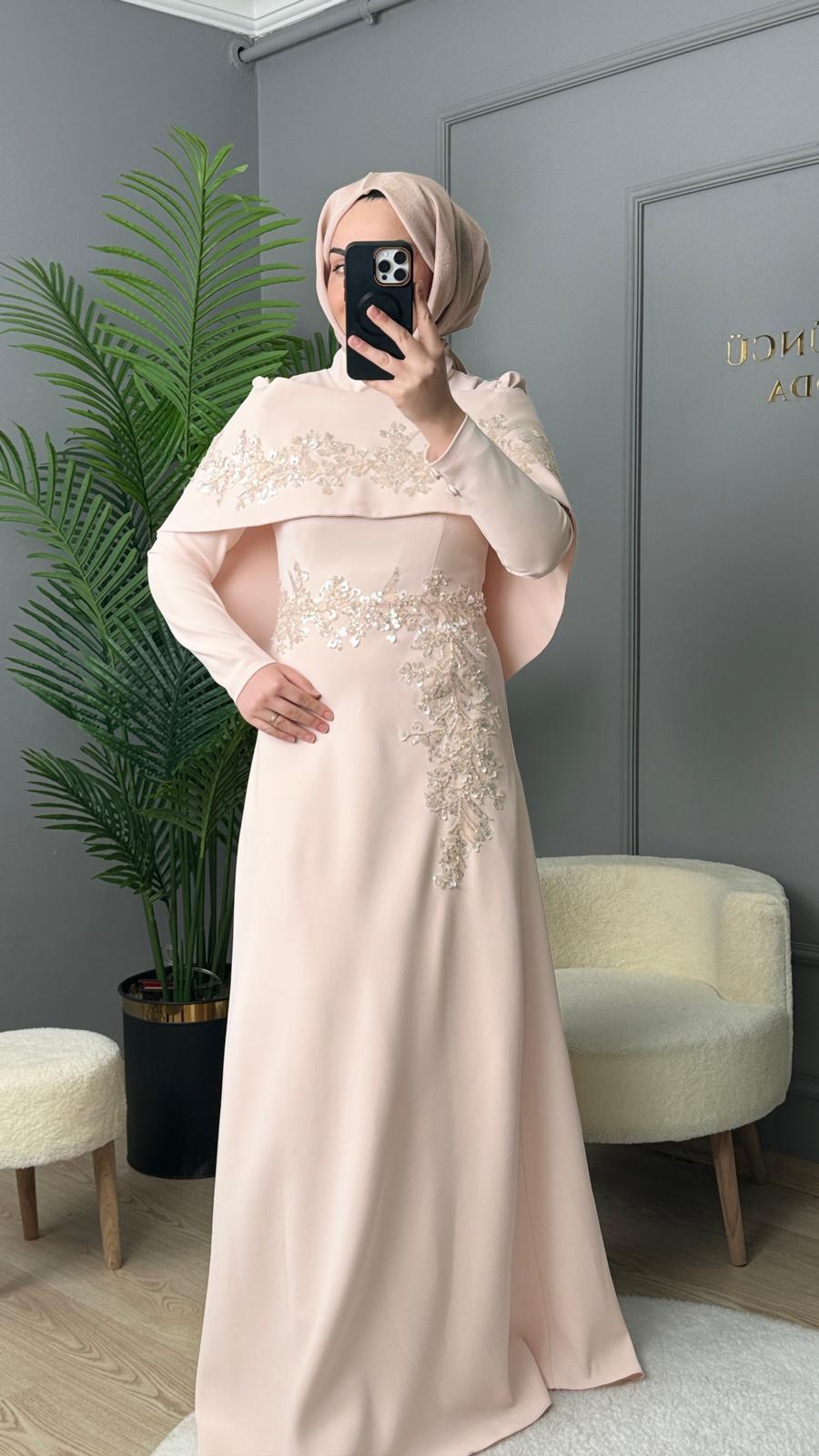 - Kenzel Pelerin Detaylı Abiye Elbise-2031