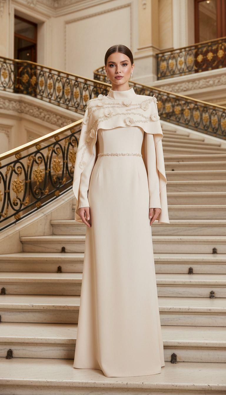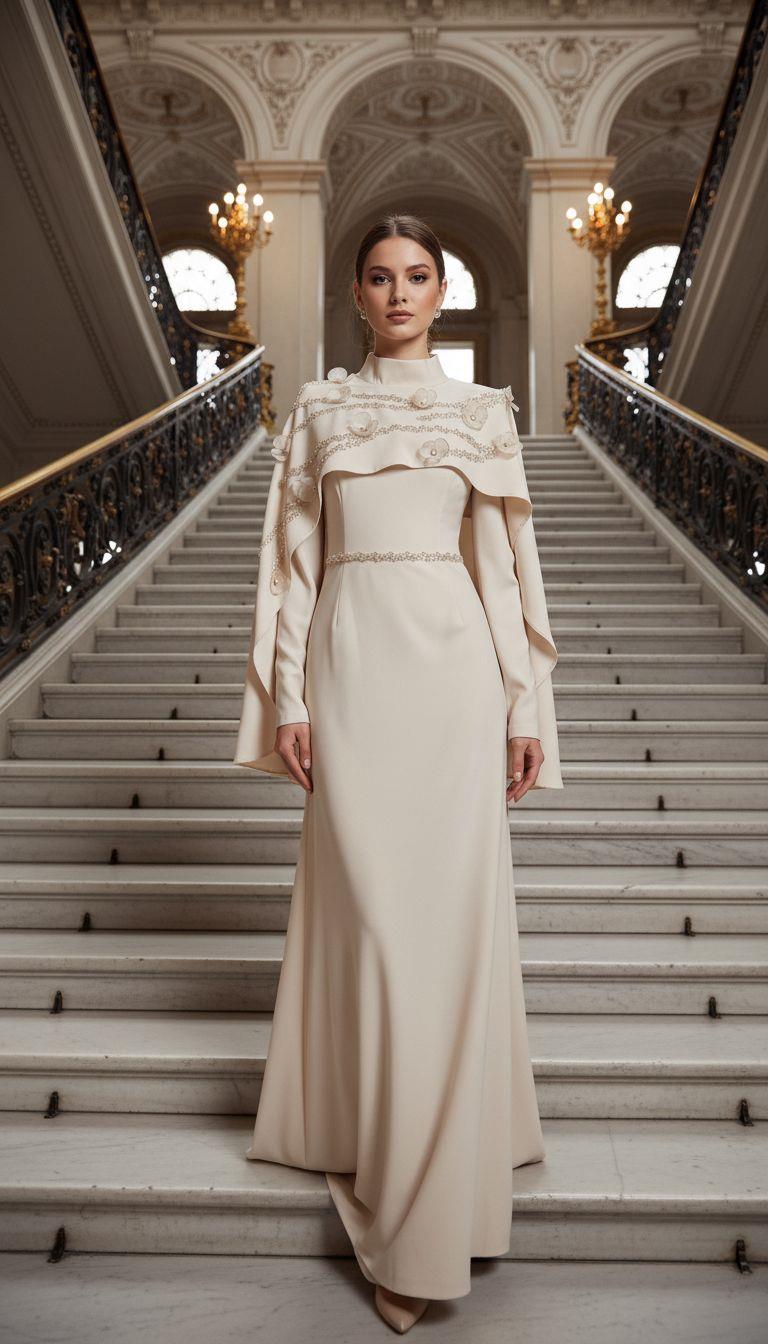- Kenzel Pelerin Detaylı Abiye Elbise-2031