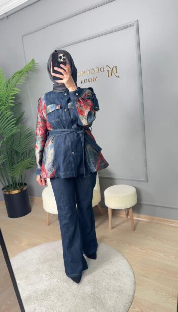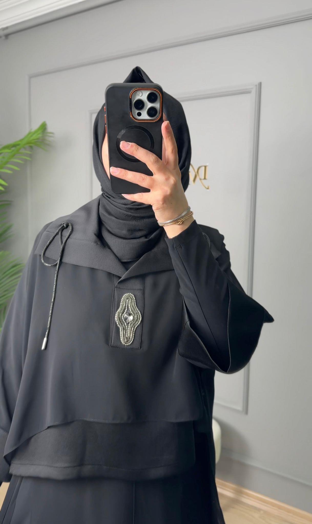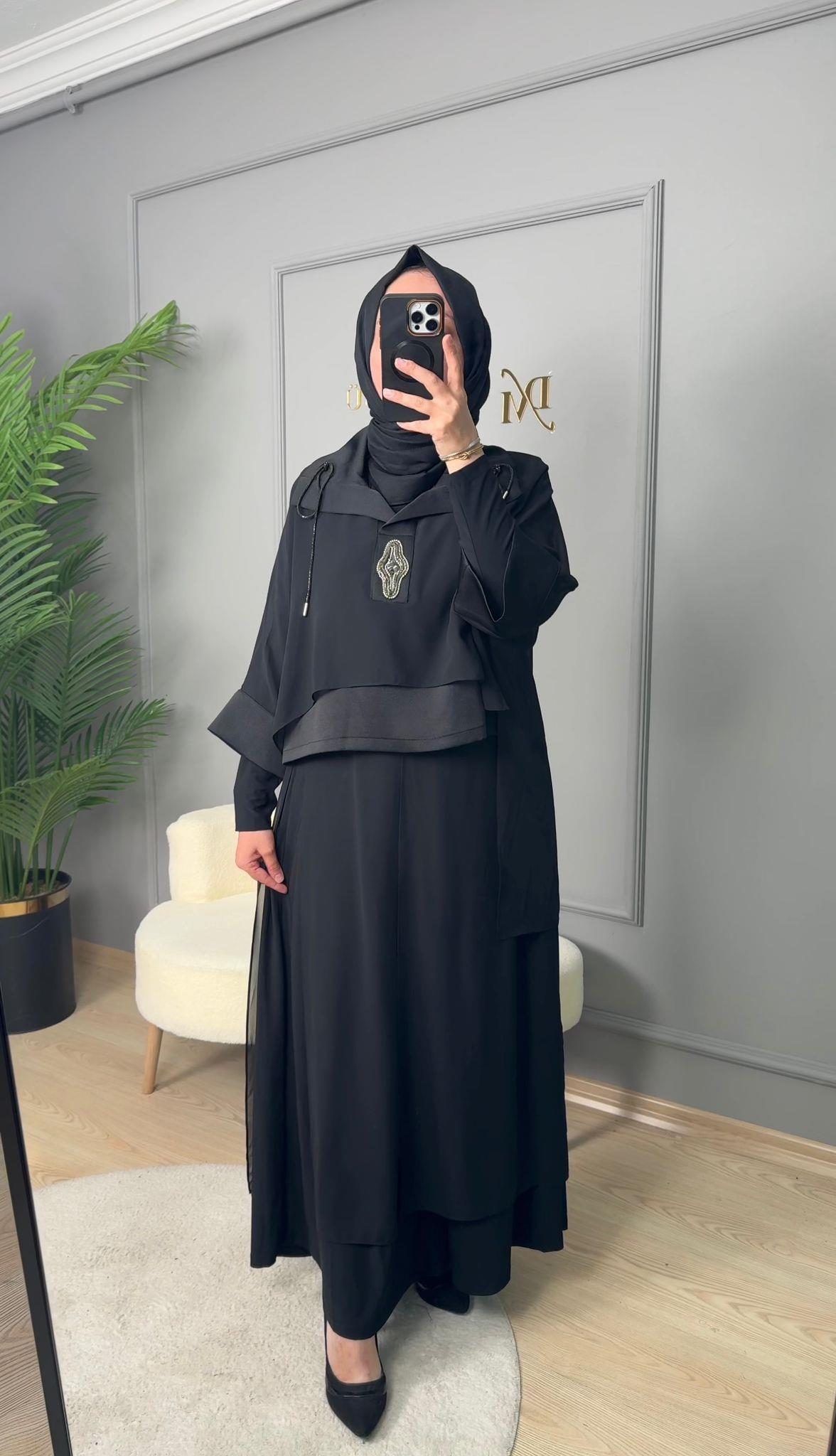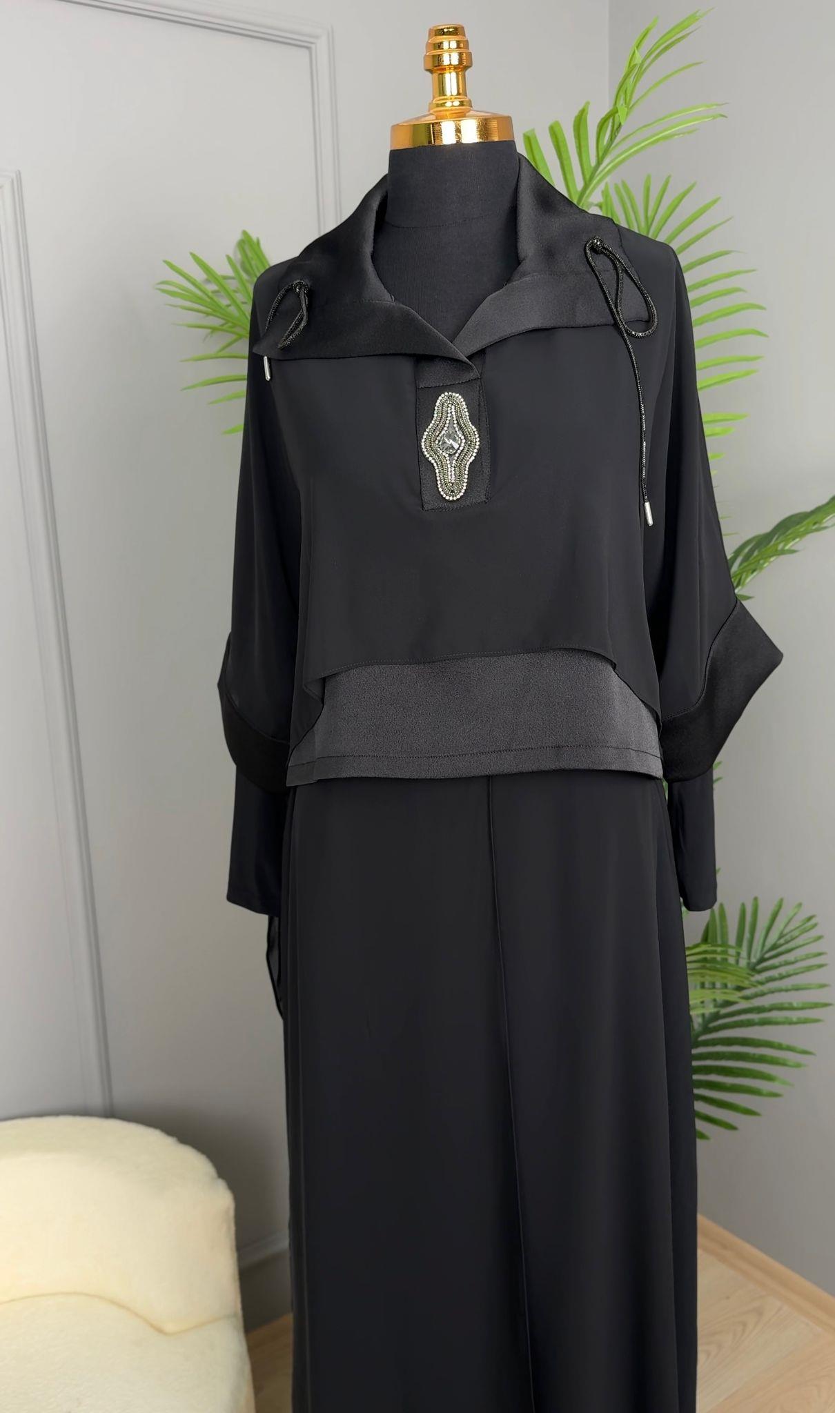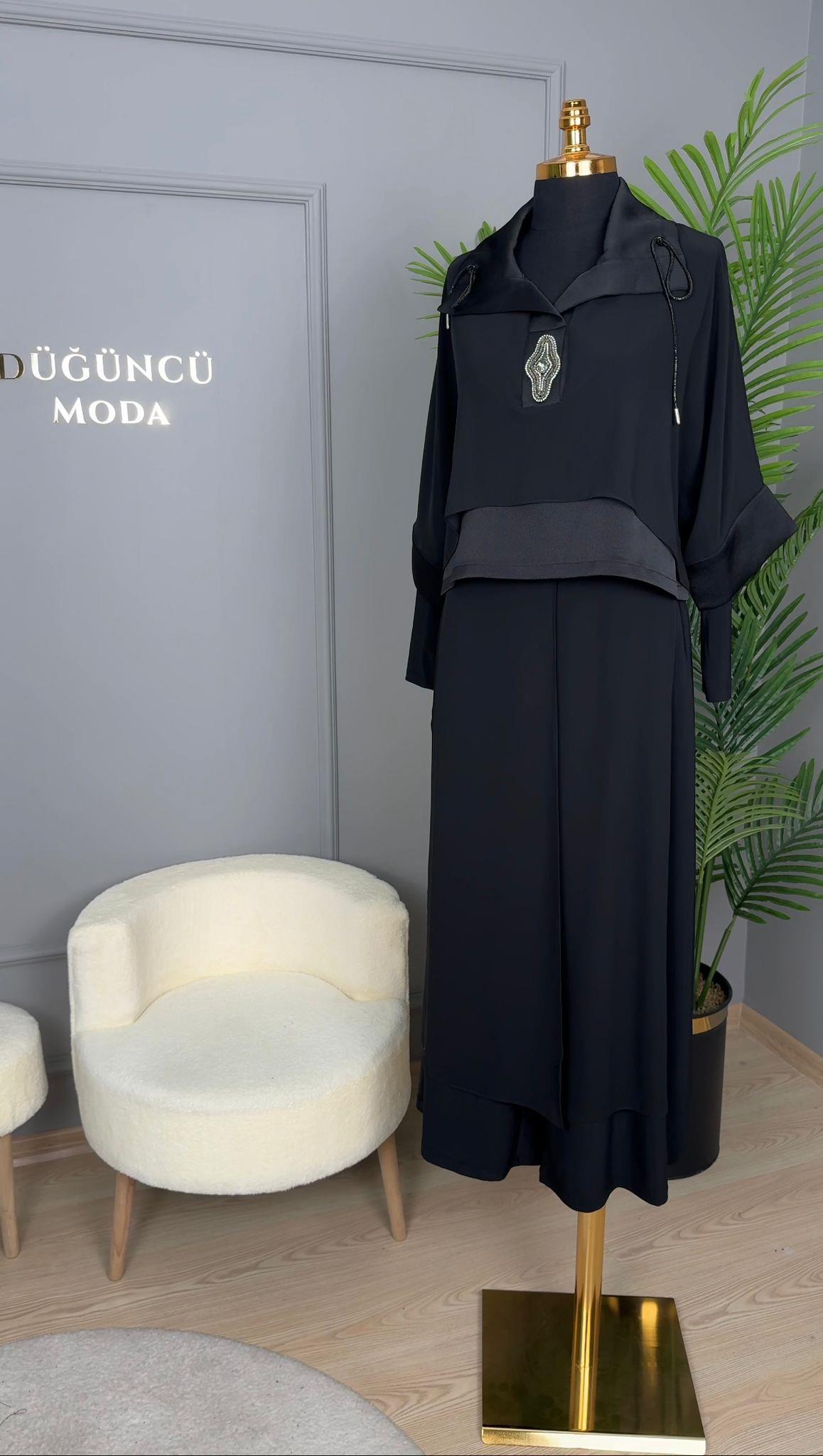 My312 Yaka Taş Detaylı Pantolonlu Takım-1545
