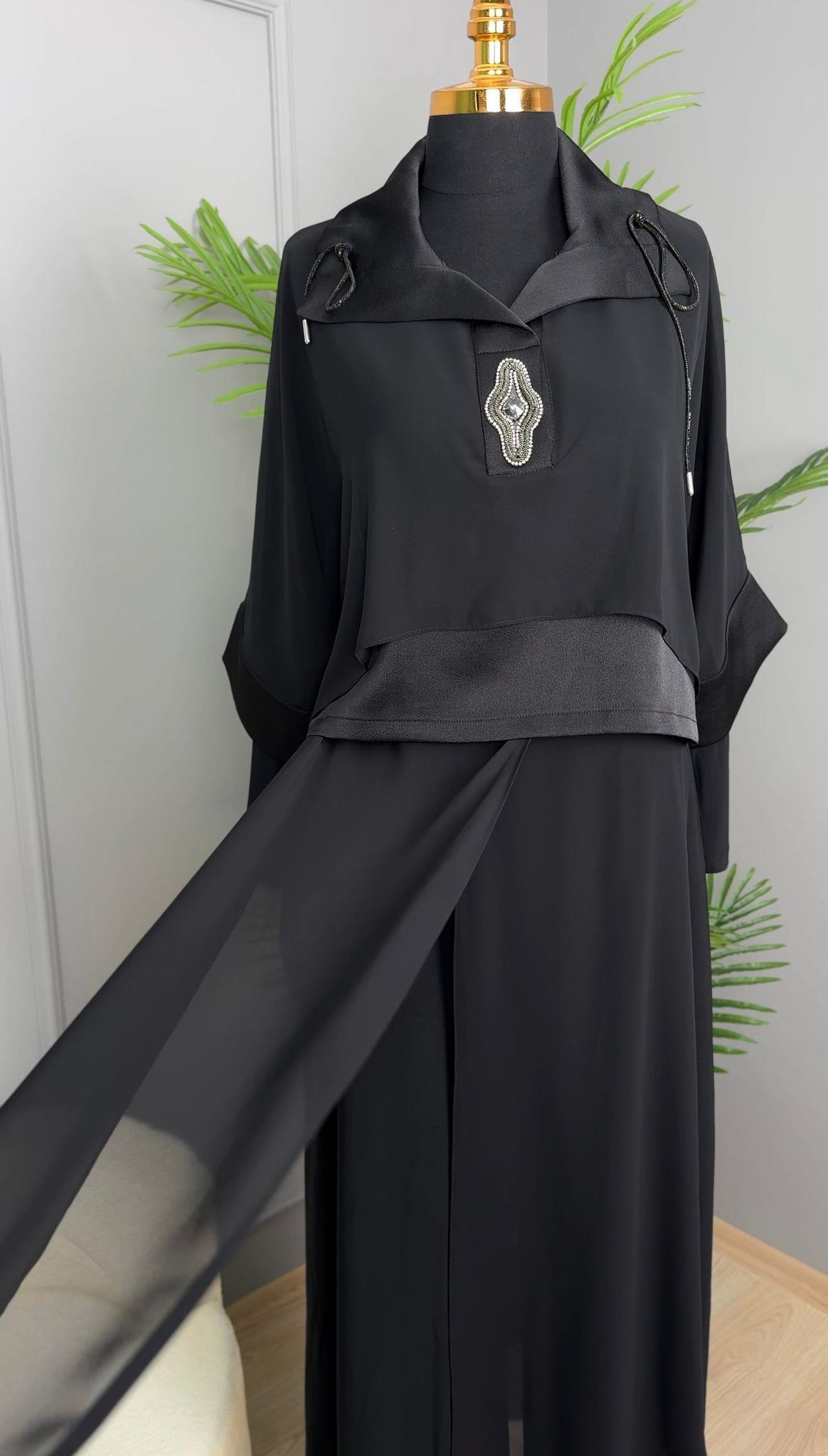 - My312 Yaka Taş Detaylı Pantolonlu Takım-1545
