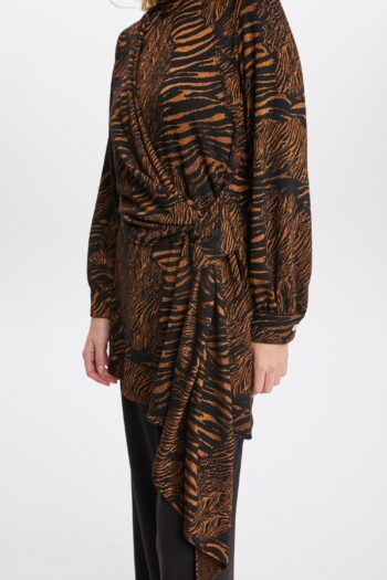 - Ahsen Yaka ve Kol Taş Detaylı Asimetrik Tunik K-6329