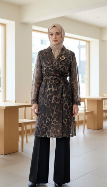 - Desen Triko Geyik Desenli Yün Uzun Hırka-23012