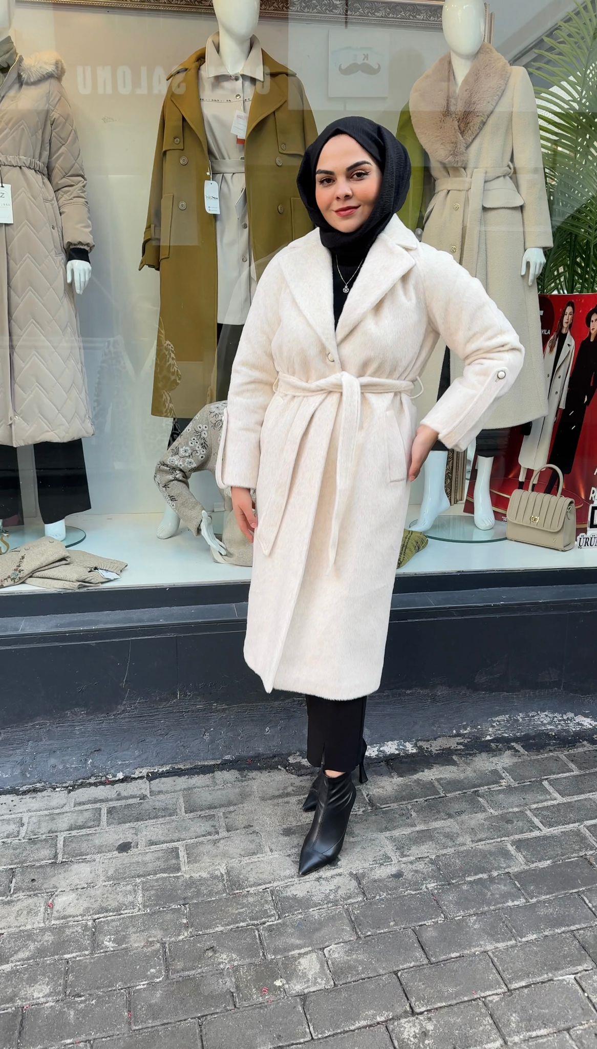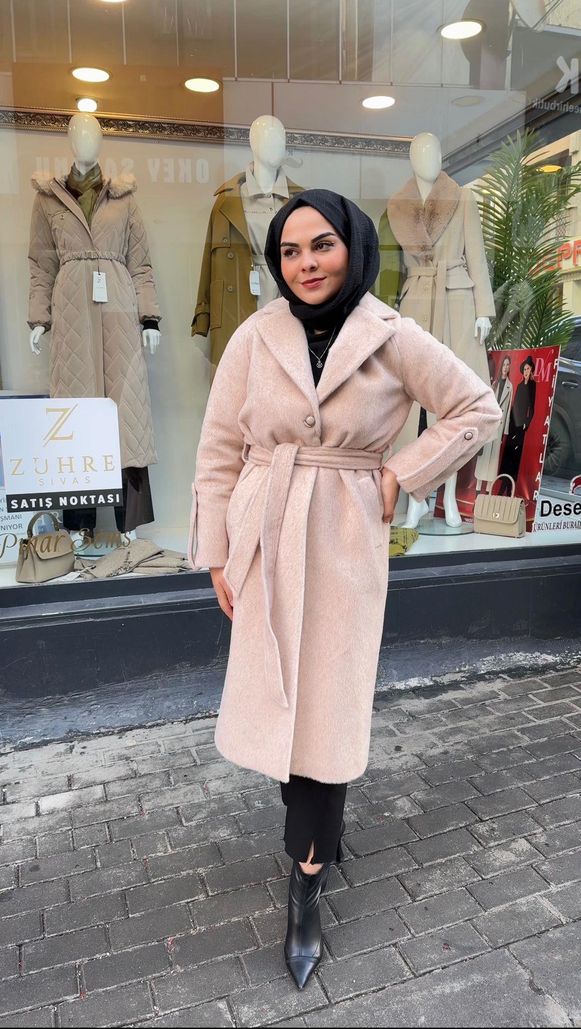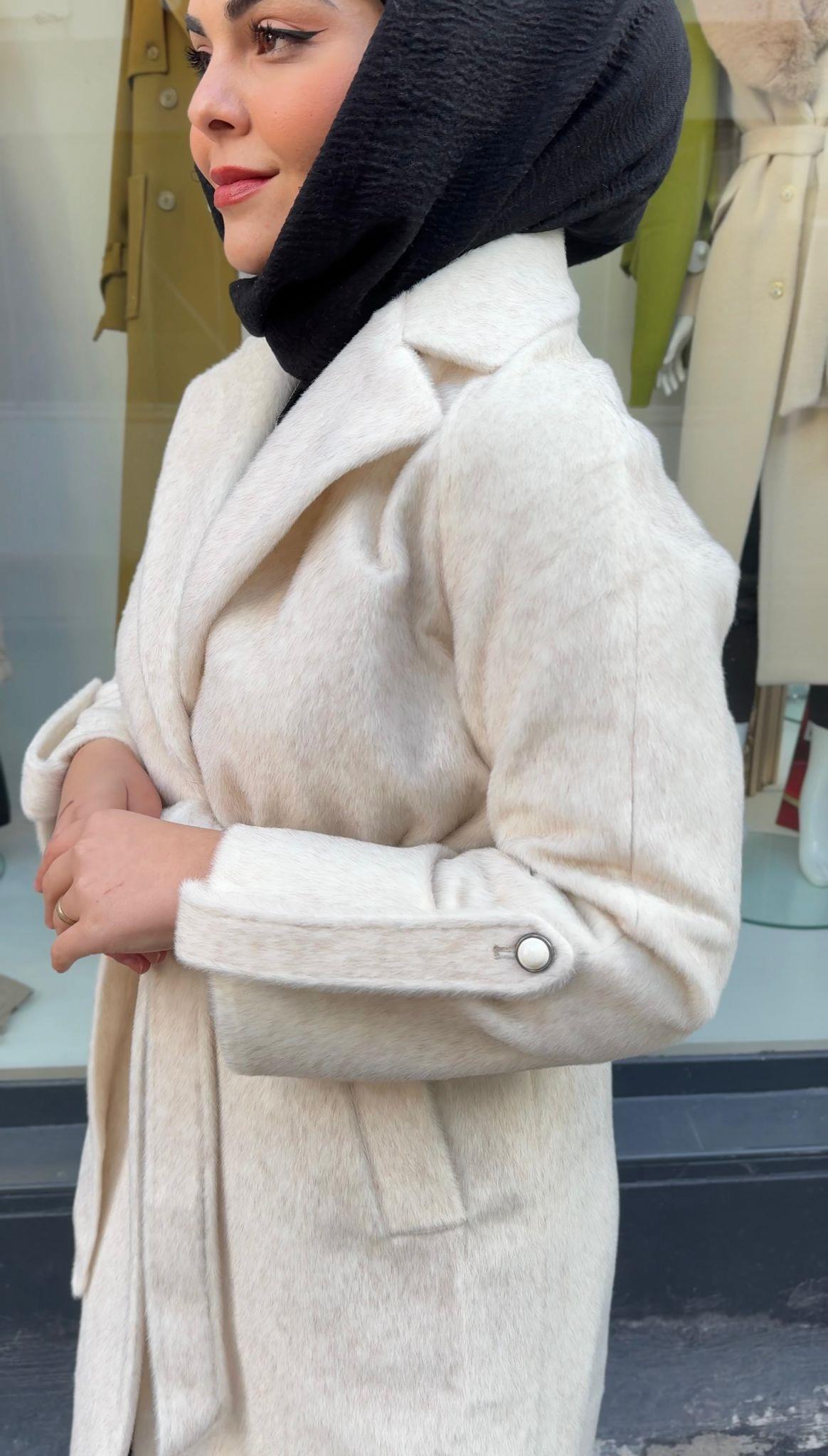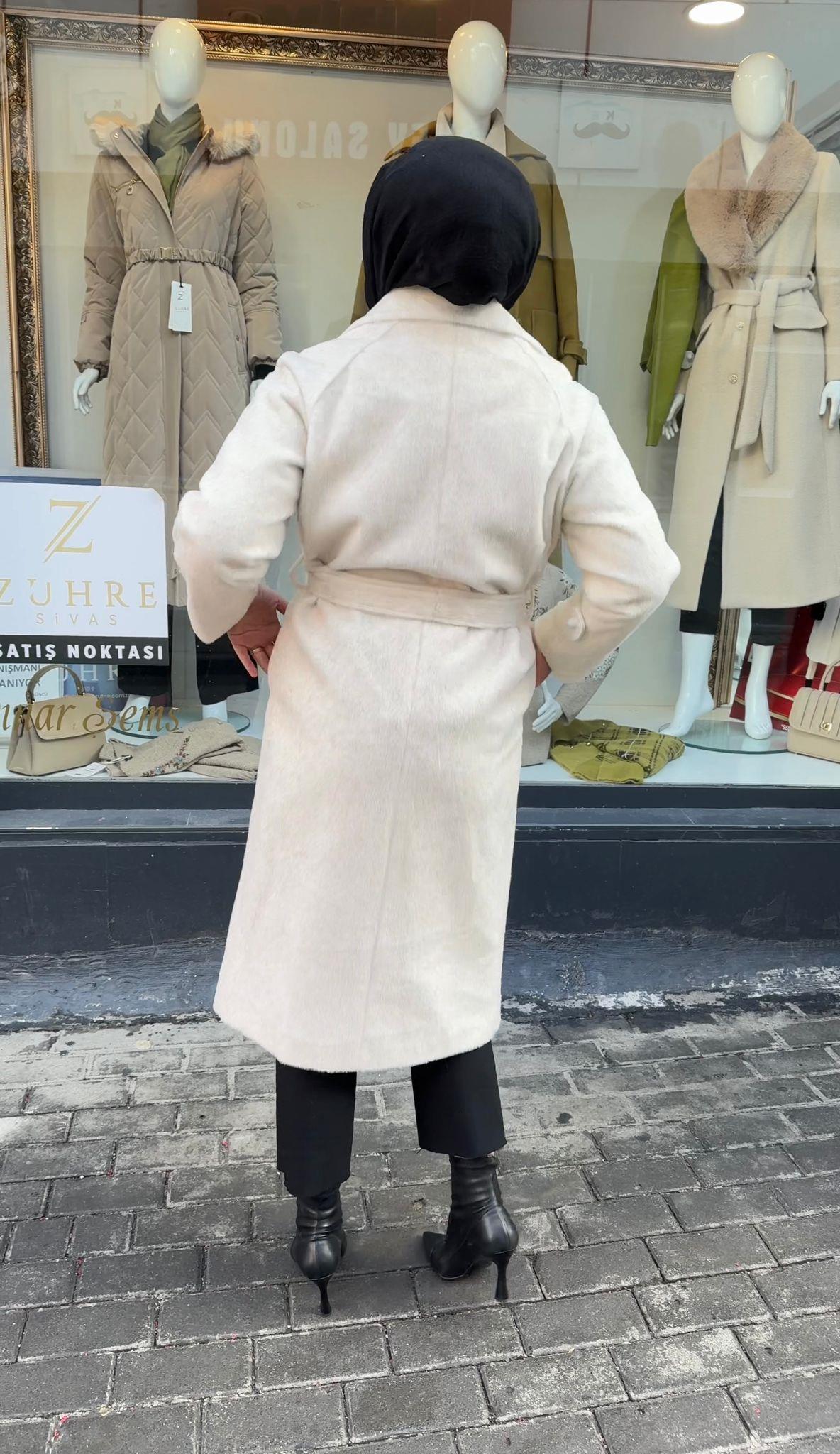 - Zühre Yaka Kürk Detaylı Kaşe Kaban-13114
