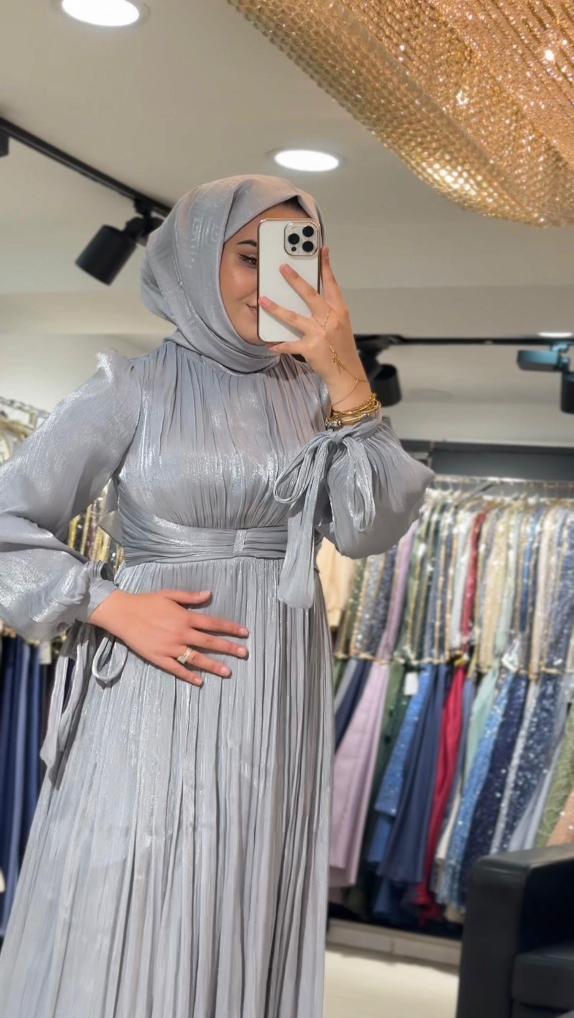 - Kenzel Kolları Otriş Detaylı Abiye Elbise-9021