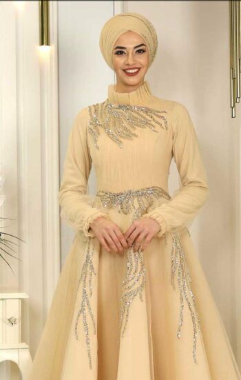 - Kenzel Kolları Taş Detaylı Abiye Elbise-9211