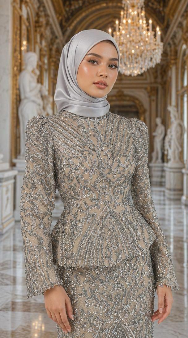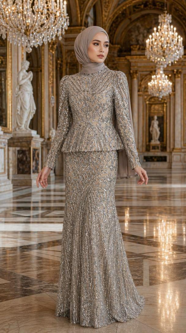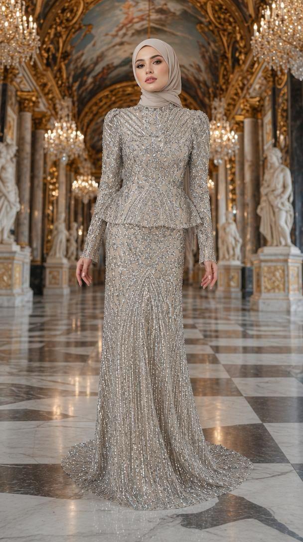 - Feriha Sarıoğlu Tamaamı Simli Kumaş Abiye Elbise-ÖZNUR