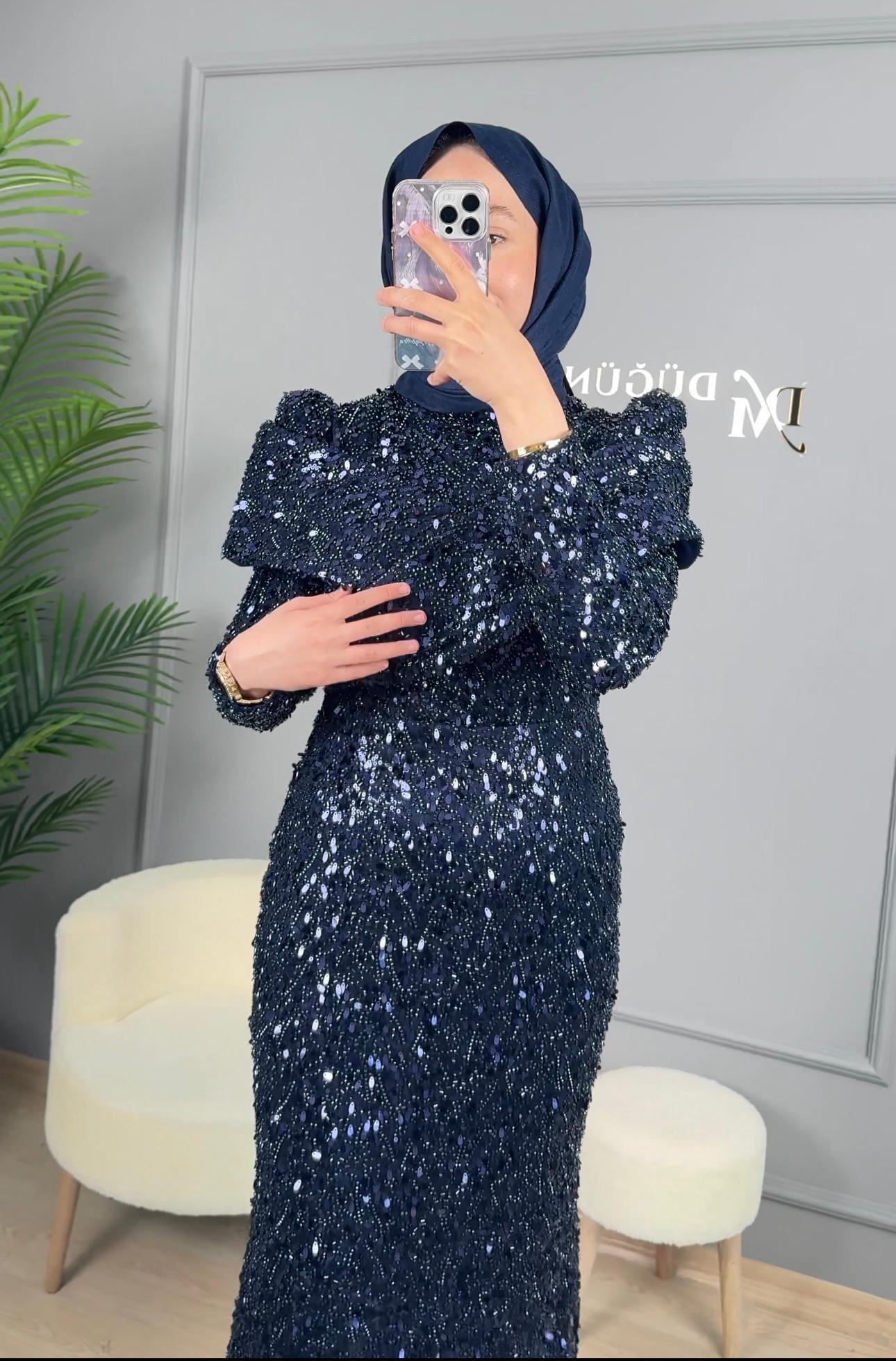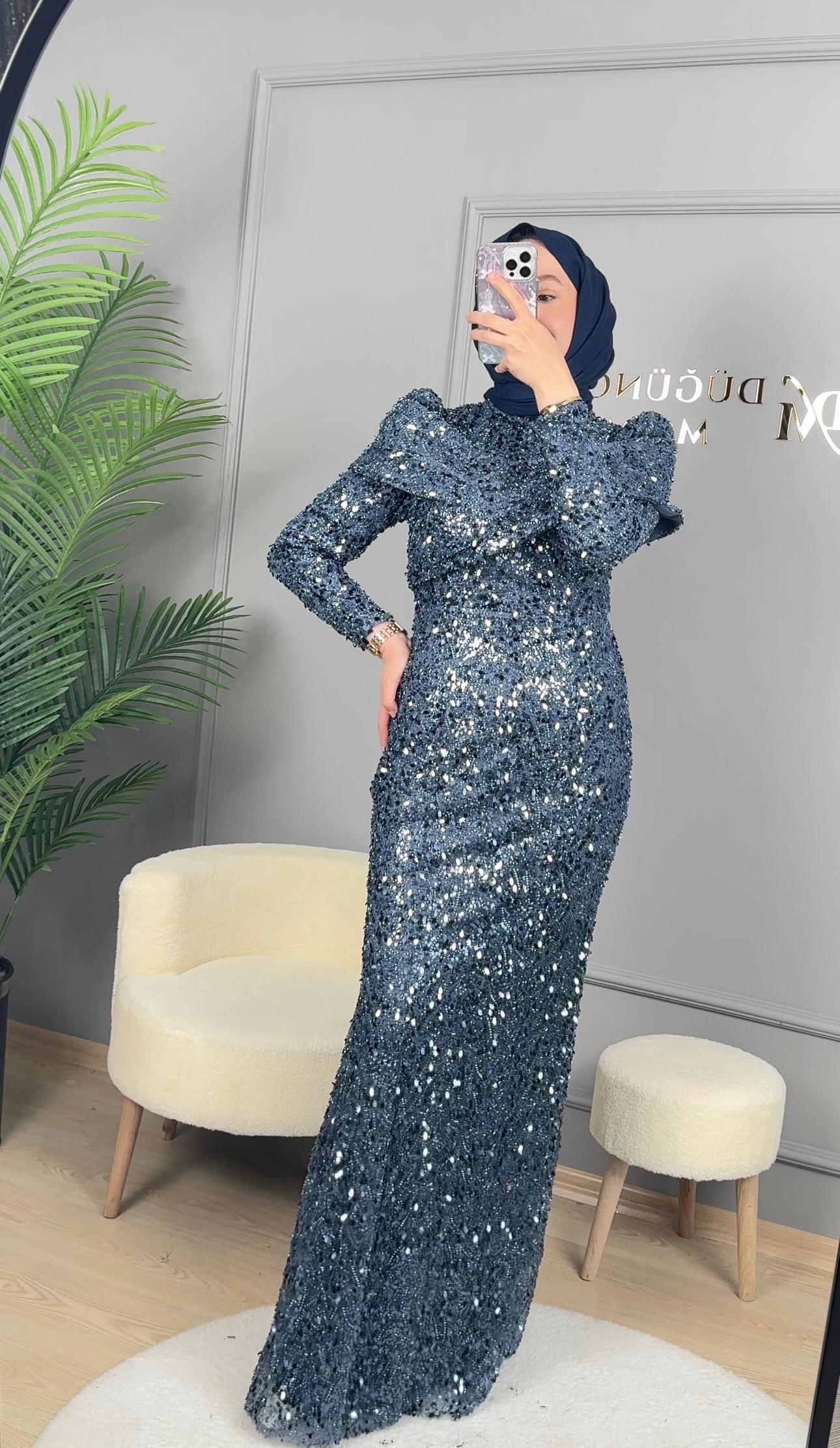 - Kenzel Tamamı Payetli Abiye Elbise-9108