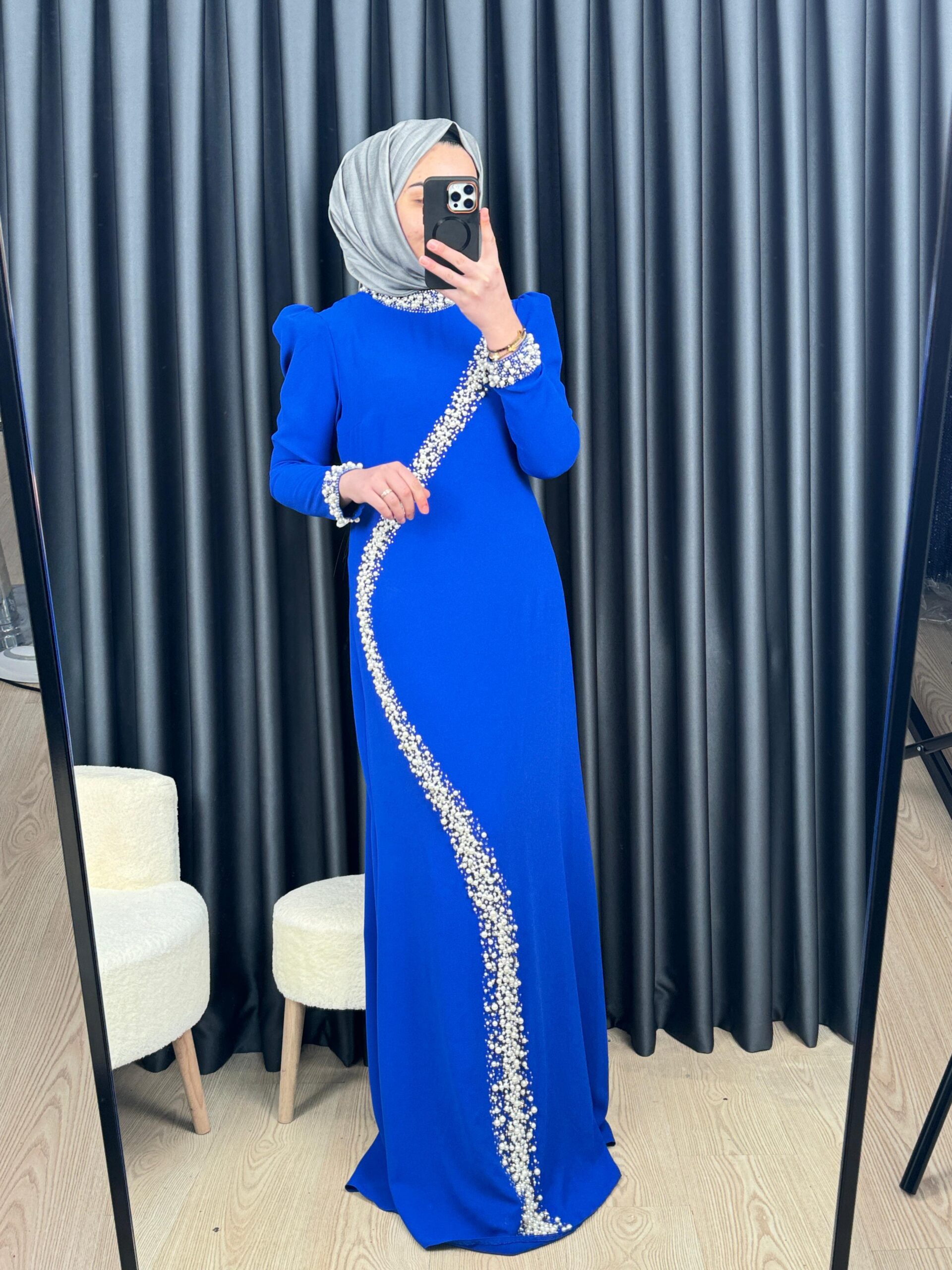 - Kenzel Taş İşleme Abiye Elbise-7018