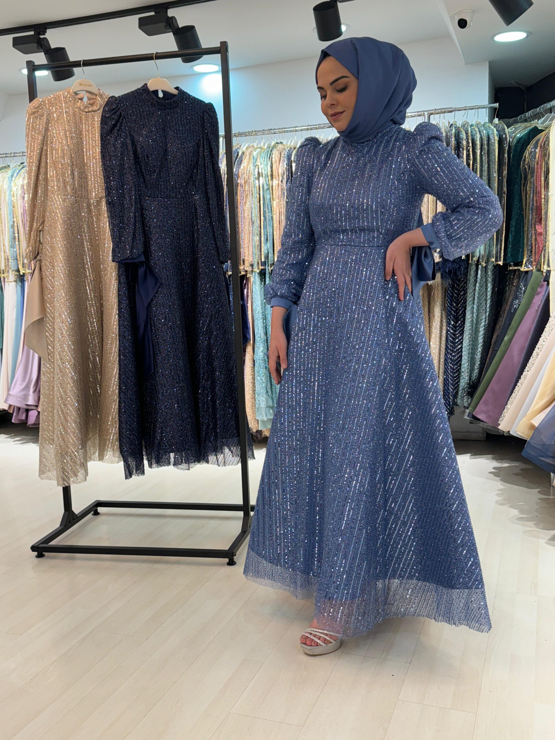 - Kenzel Otriş Detaylı Abiye Elbise-9056