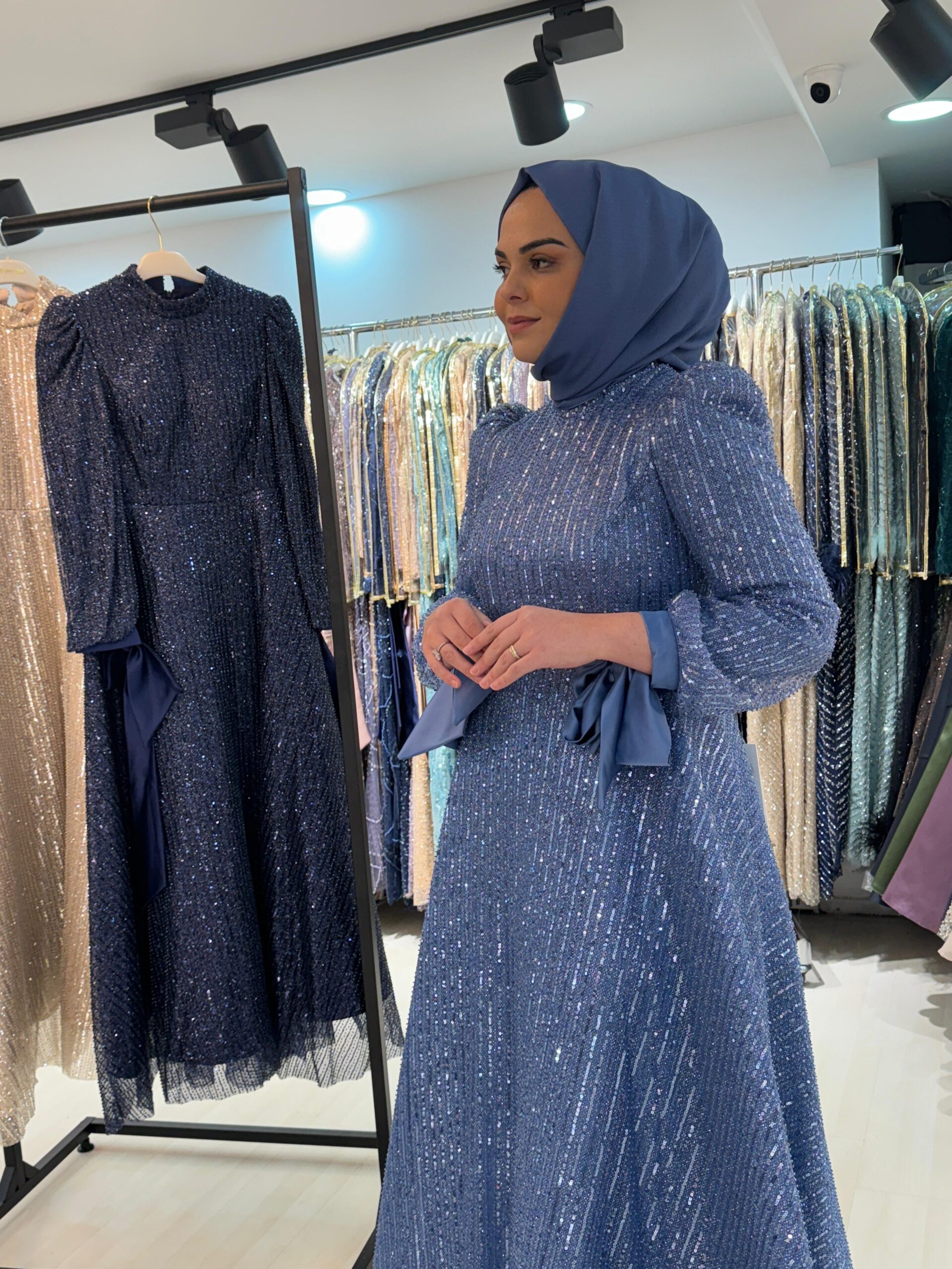 - Kenzel Kolları Otriş Detaylı Abiye Elbise-9021