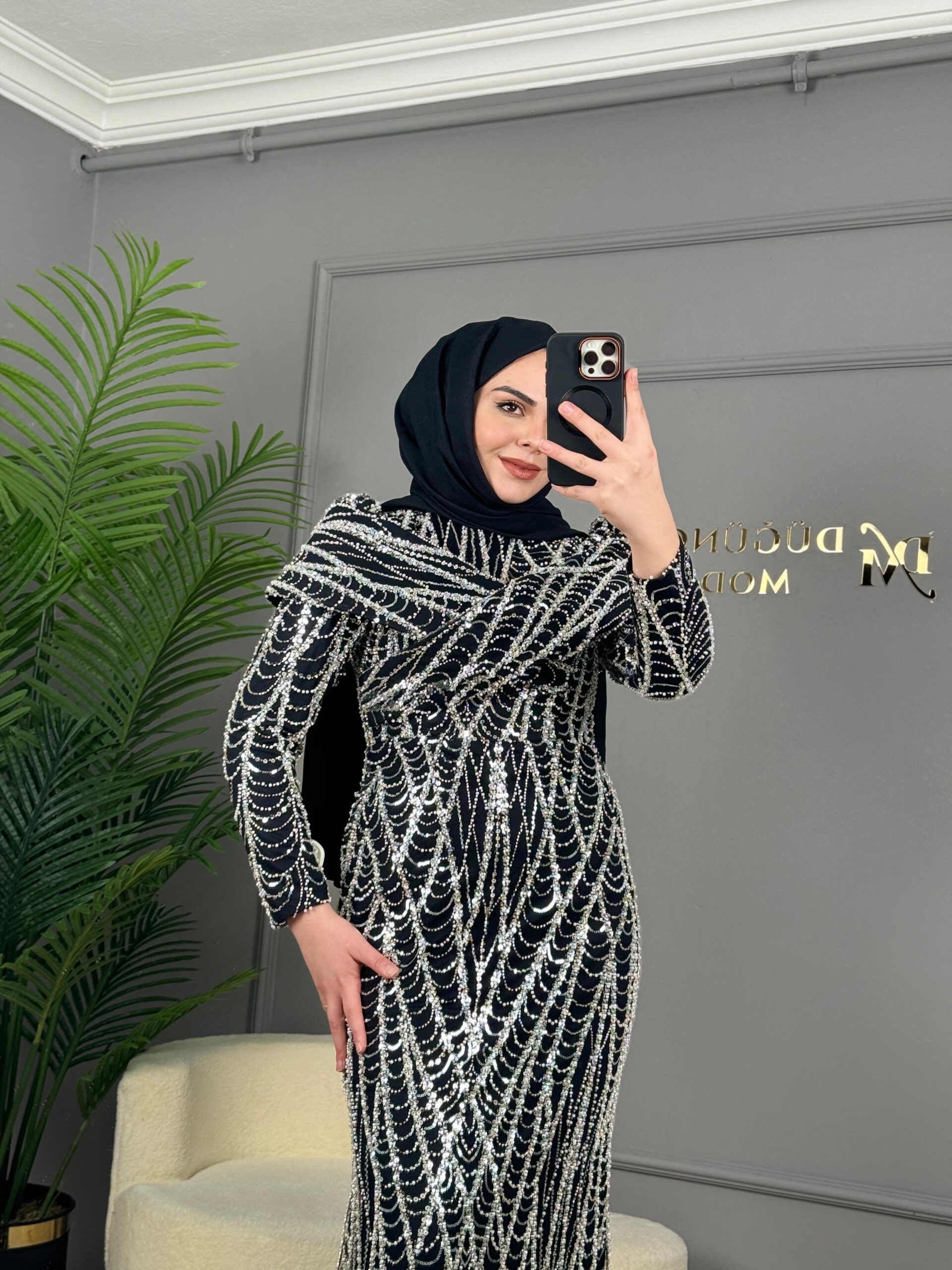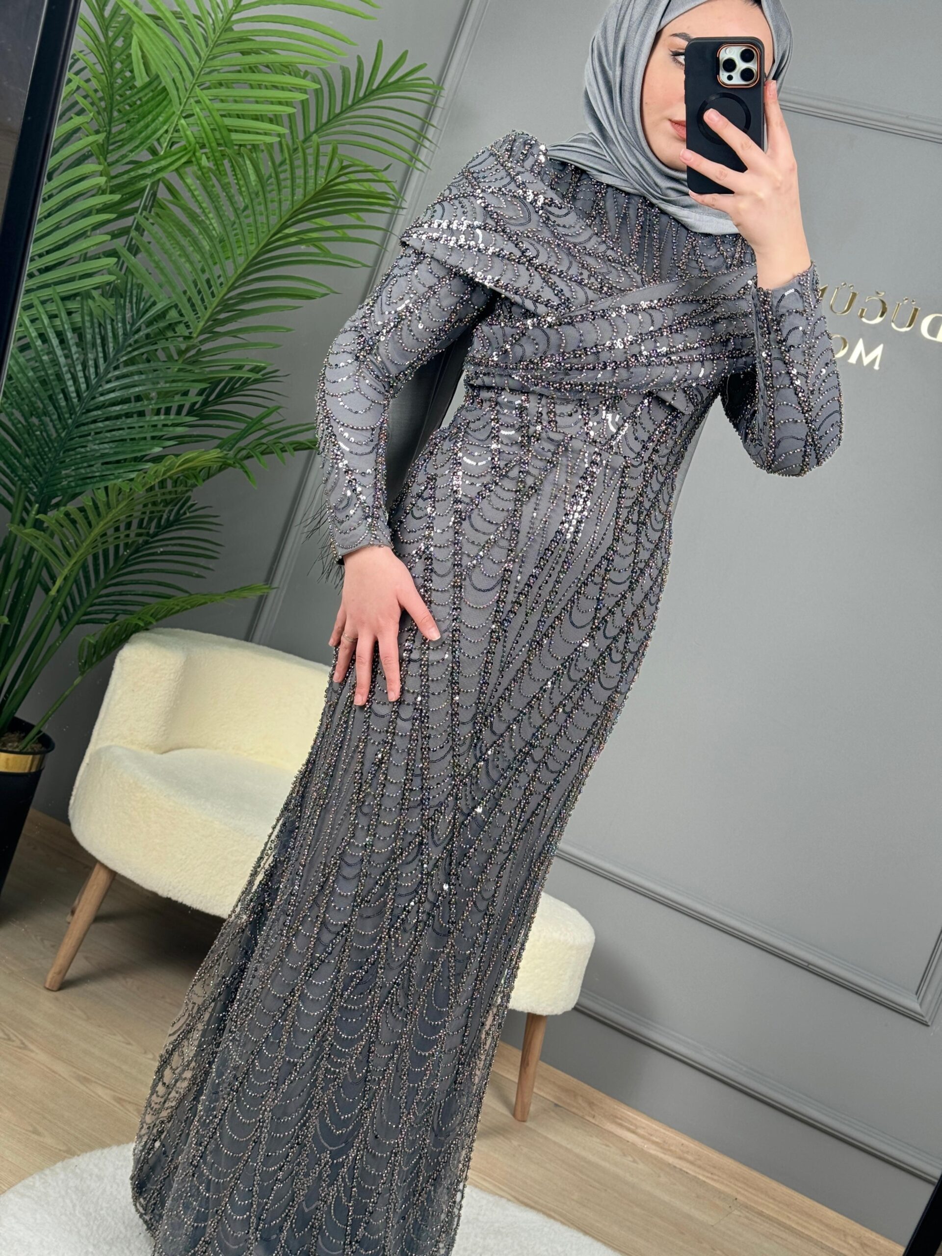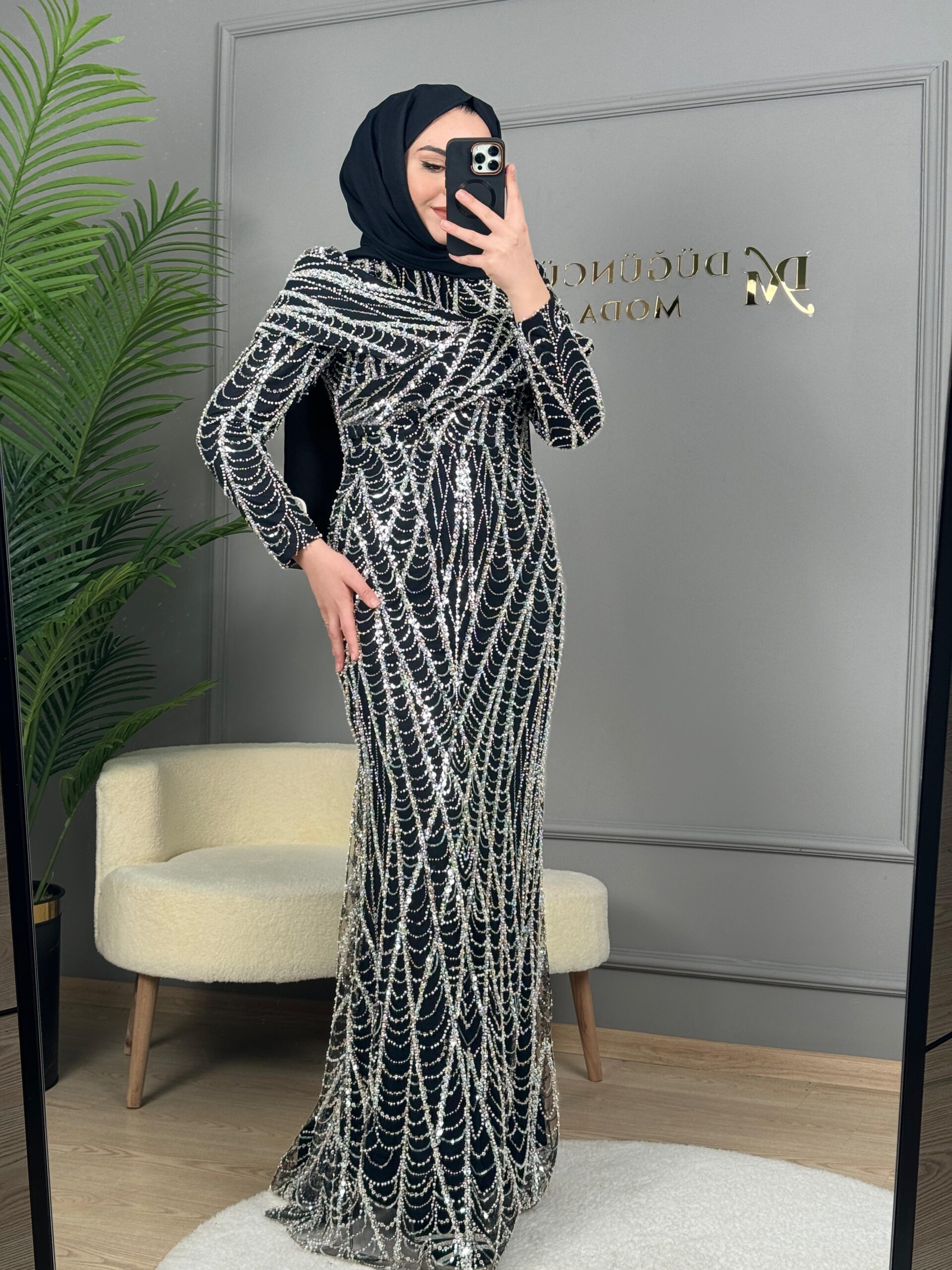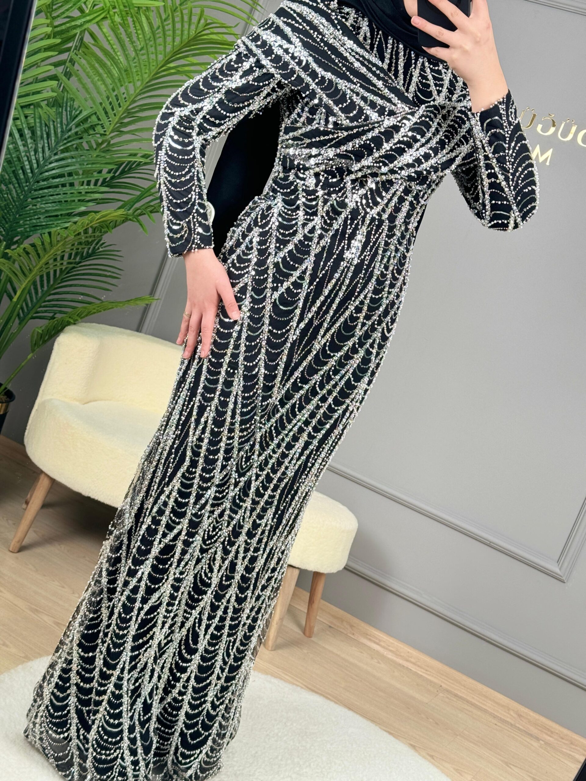 - Kenzel Tamamı Payetli Abiye Elbise-9108