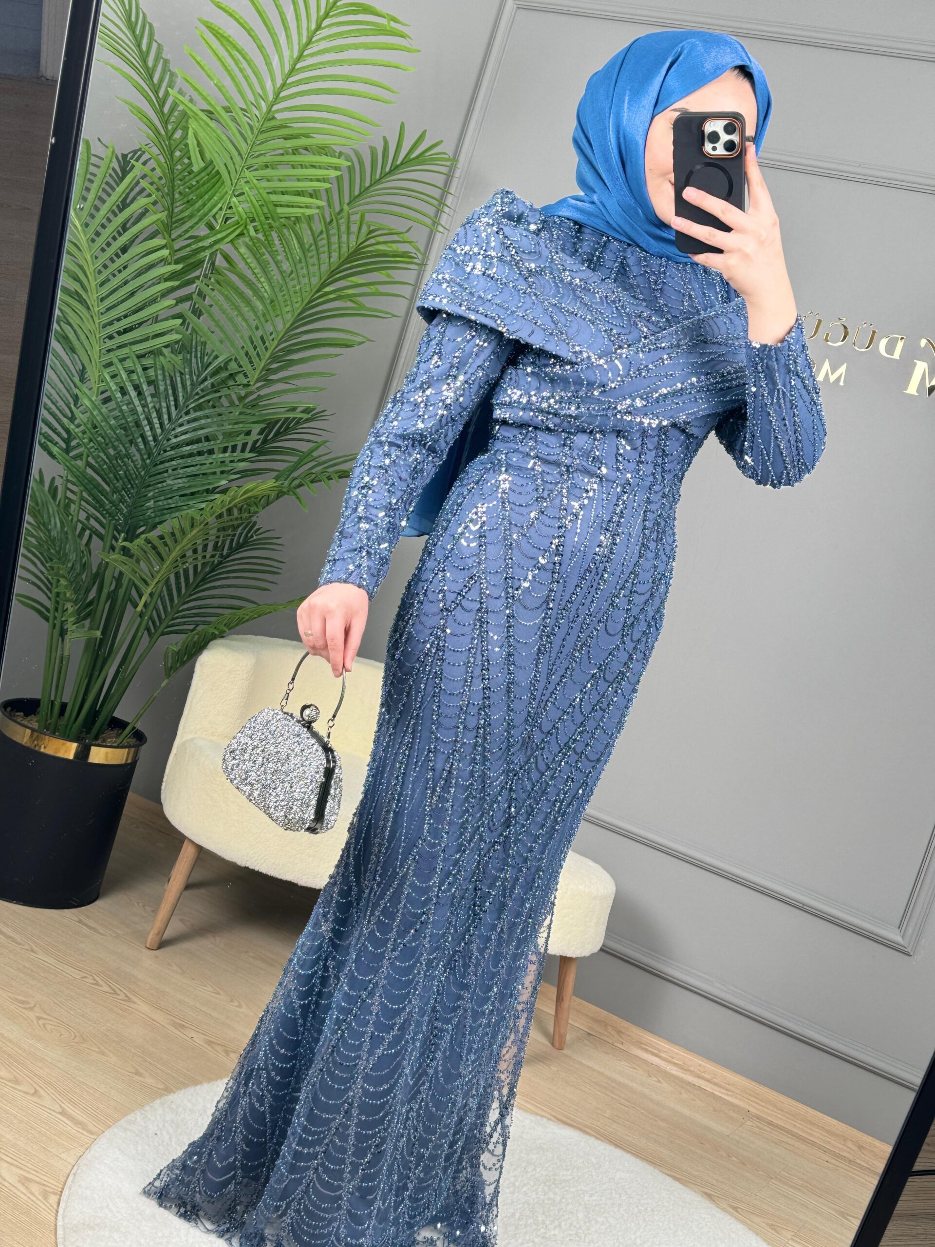 - Kenzel Otriş Detaylı Abiye Elbise-9056