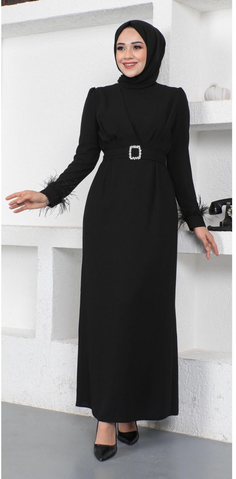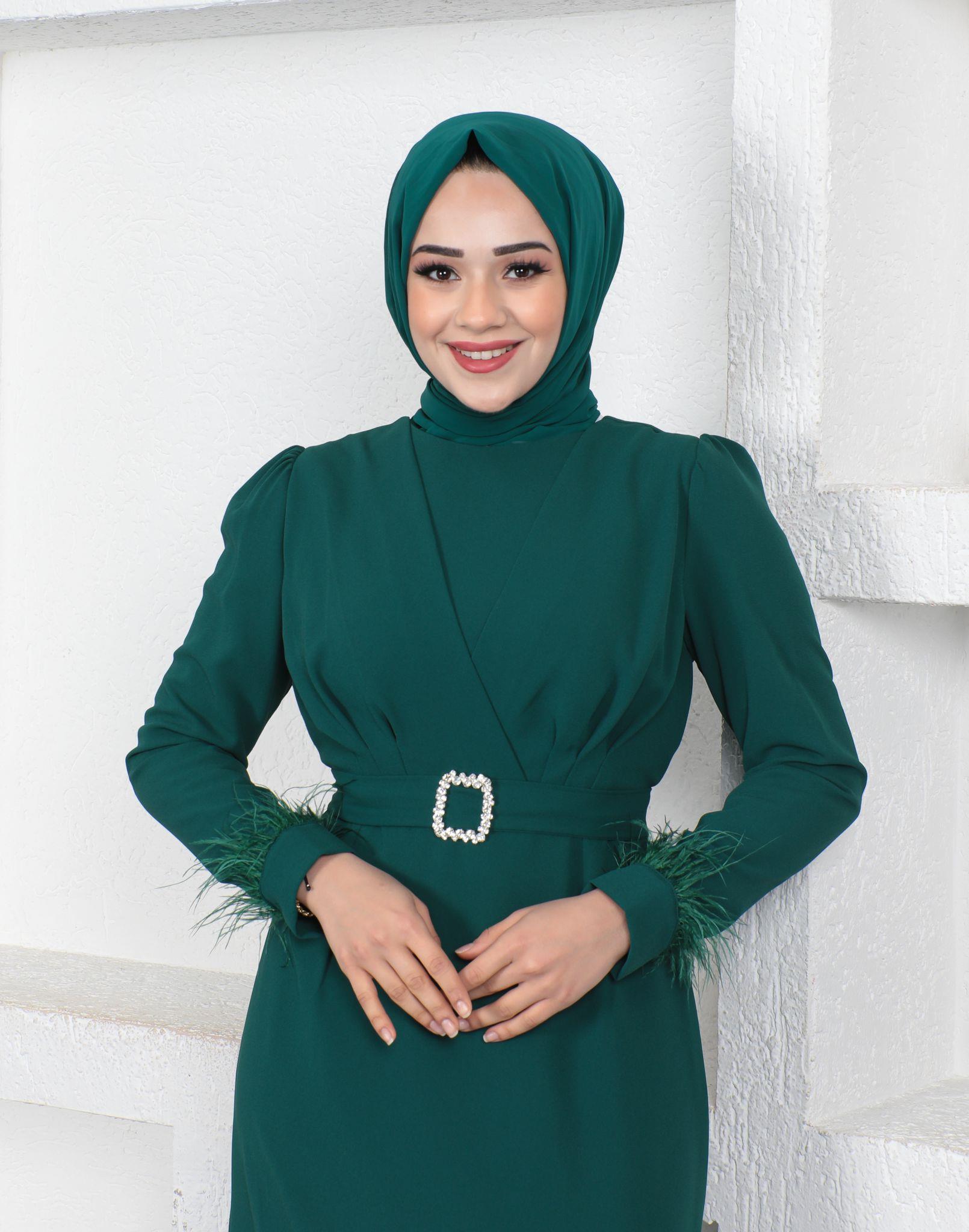 - Kenzel Kolları Otriş Detaylı Abiye Elbise-9021