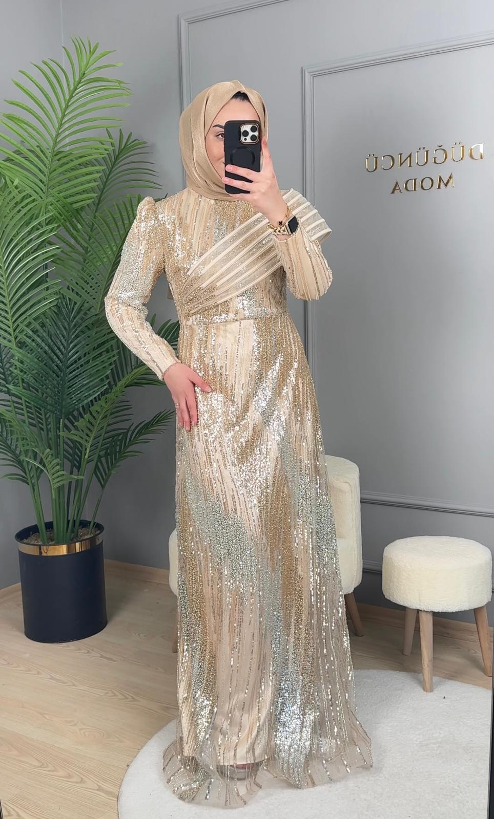 - Kenzel Tamamı Payetli Abiye Elbise-9108