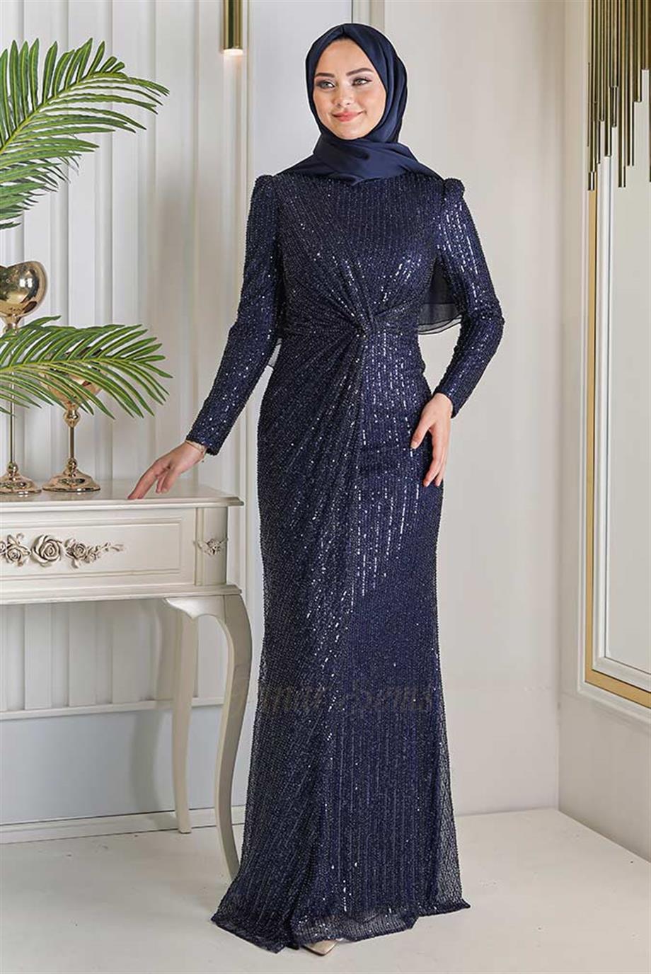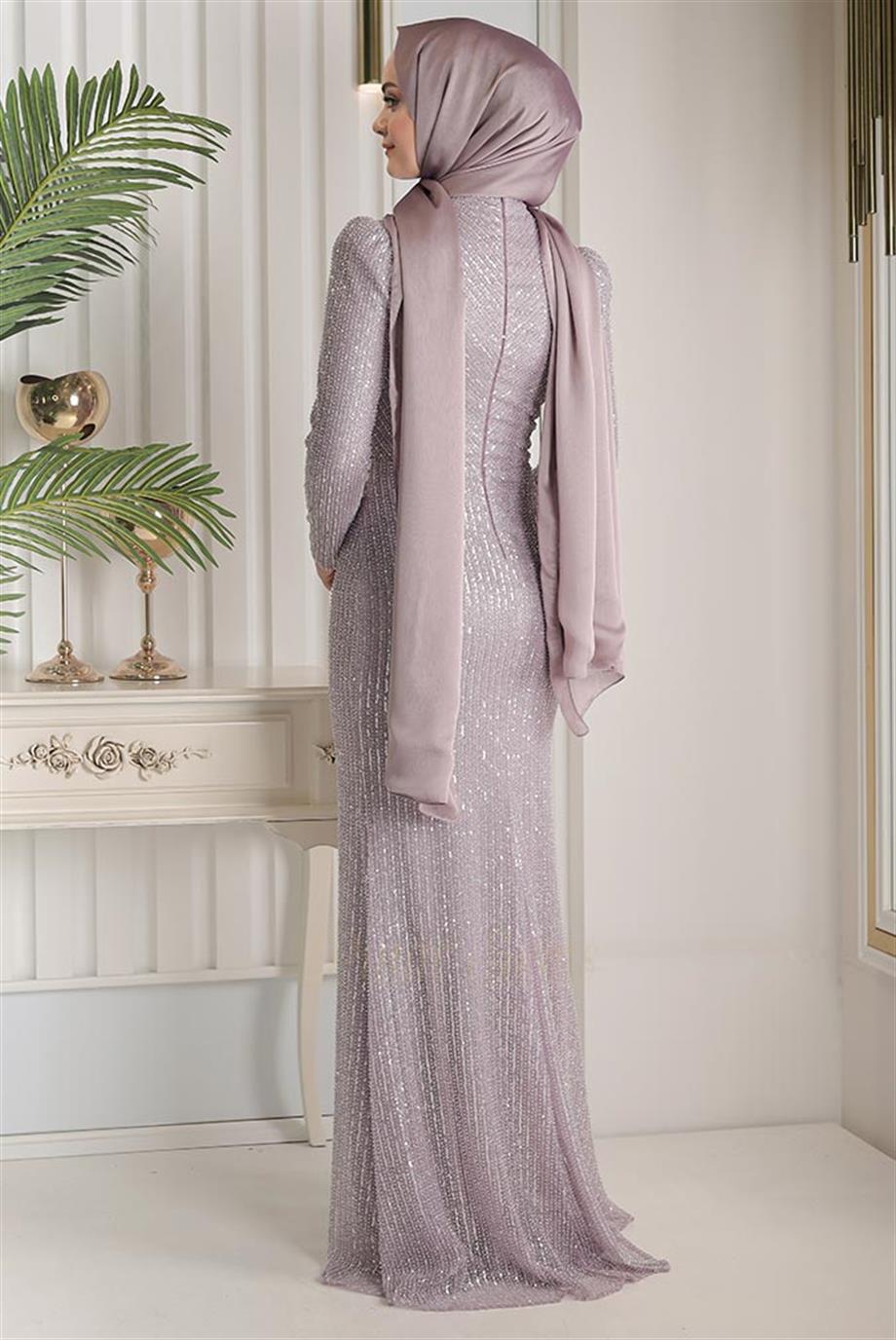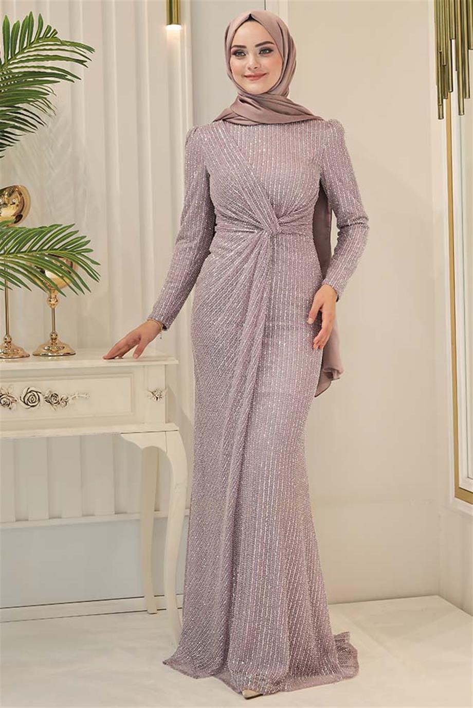 - Kenzel Kolları Otriş Detaylı Abiye Elbise-9021