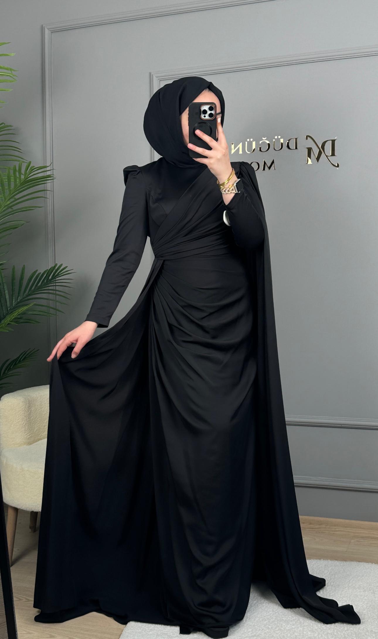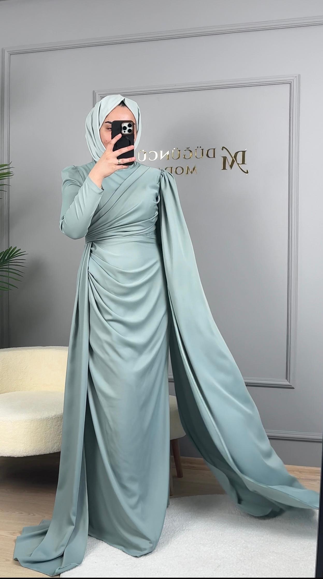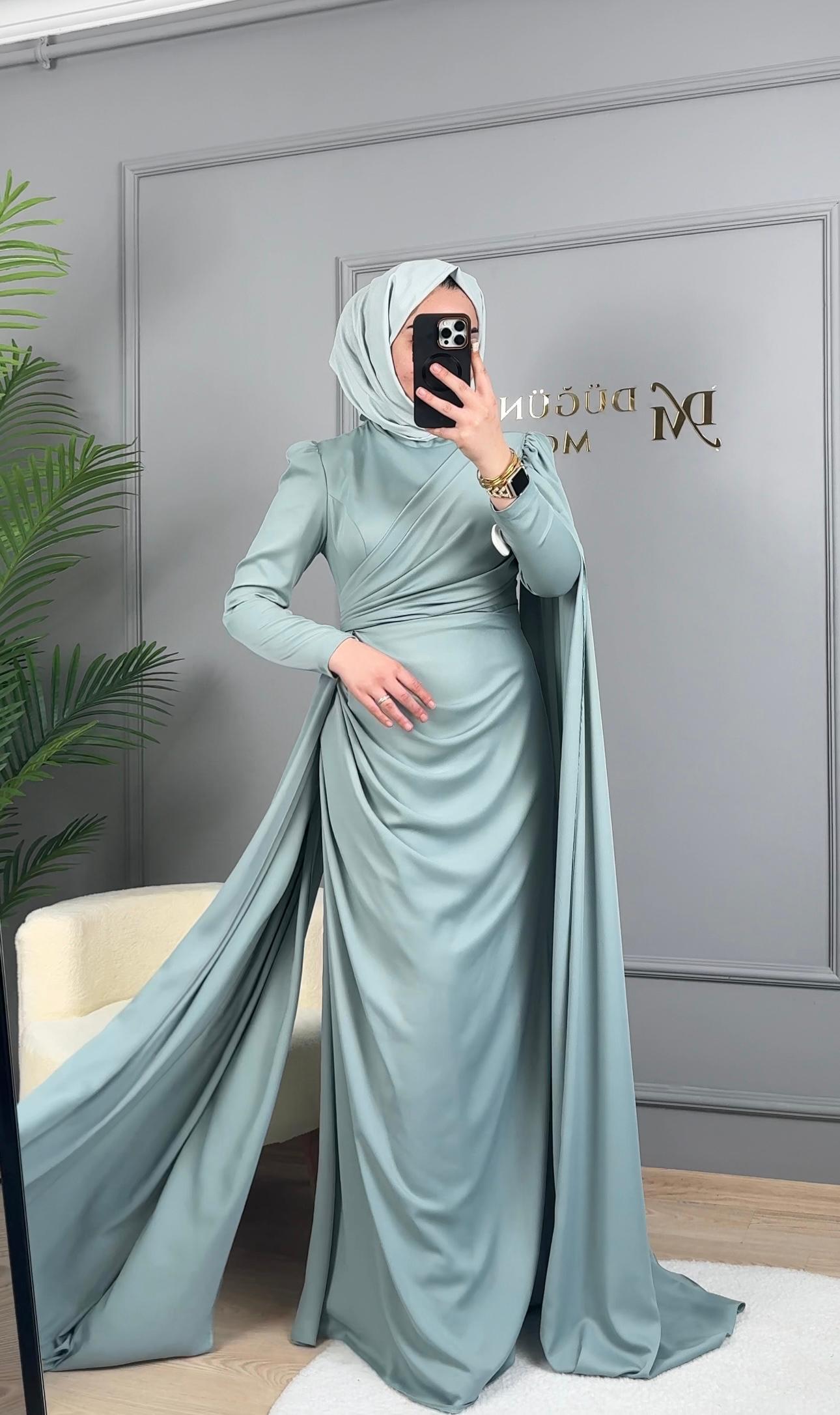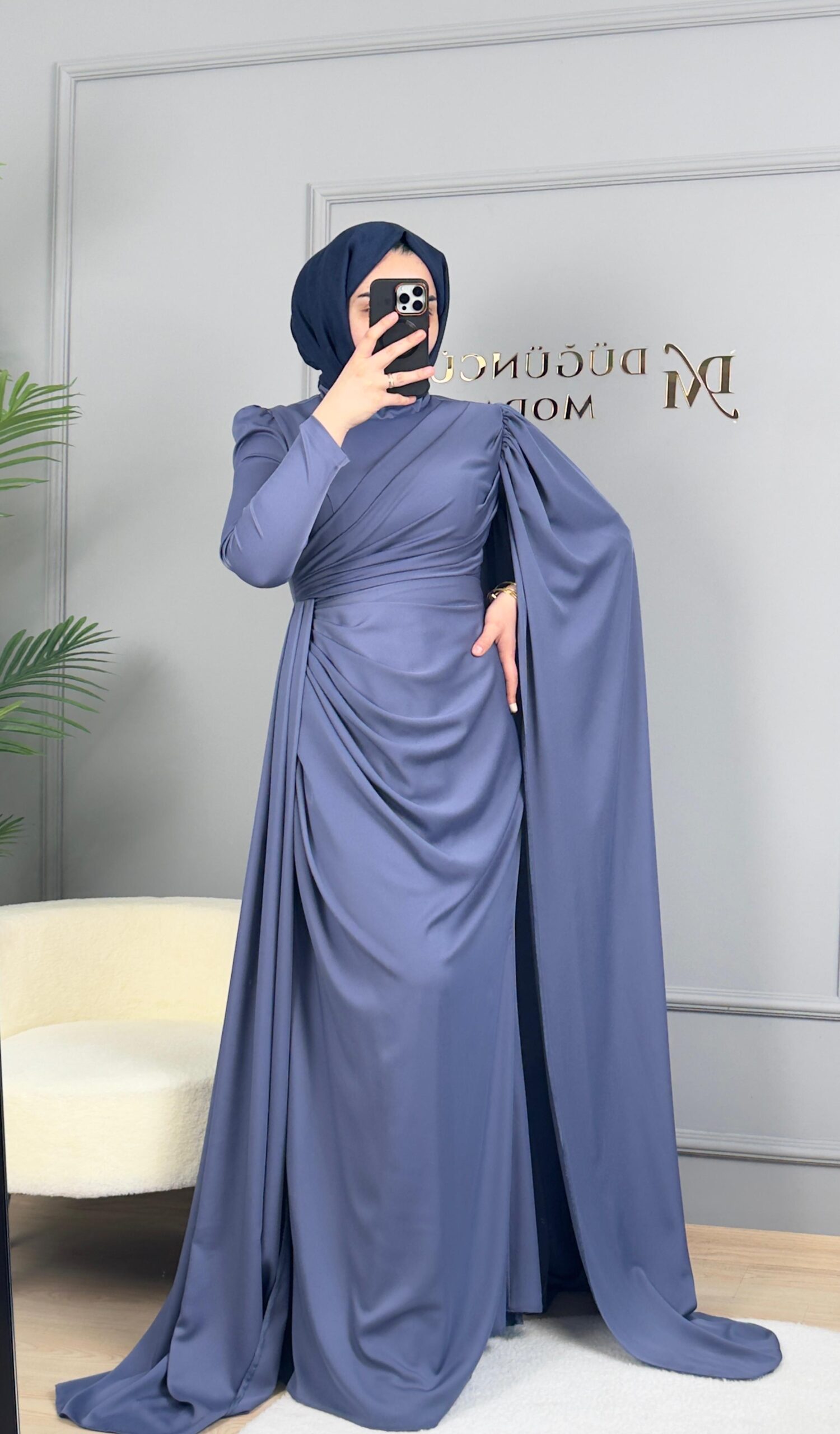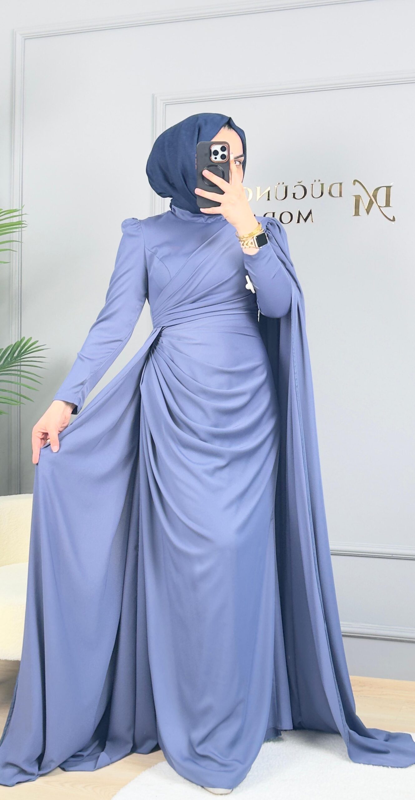 - Kenzel Pelerin Detaylı Abiye Elbise-2031