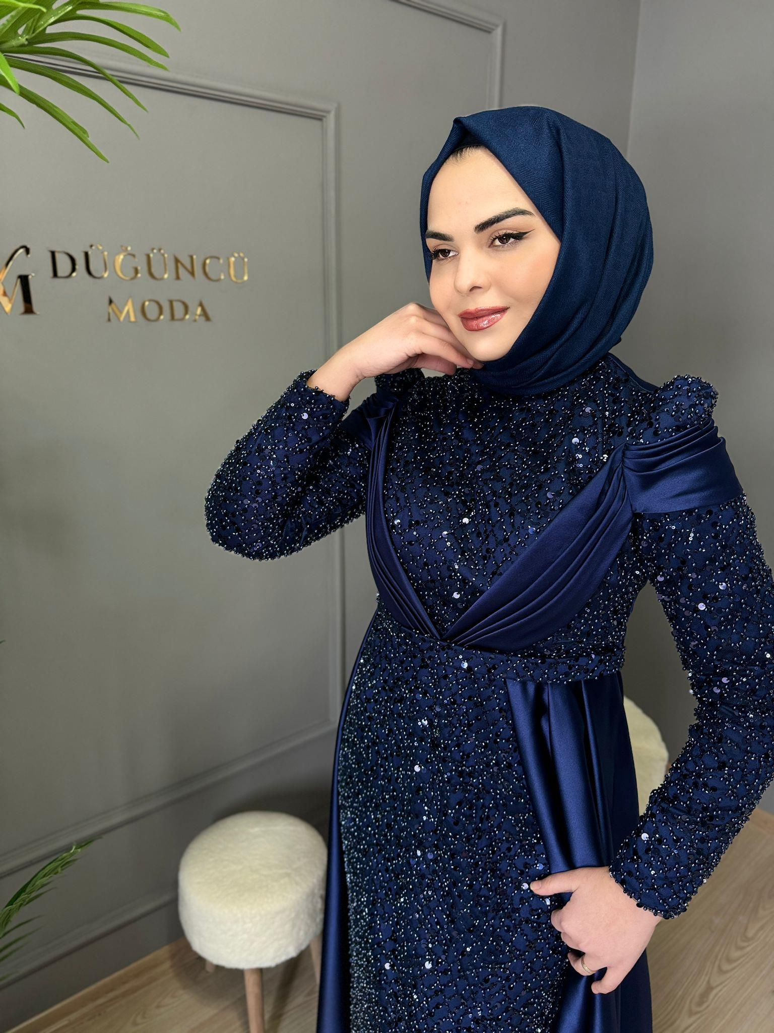 - Kenzel Kolları Otriş Detaylı Abiye Elbise-9021