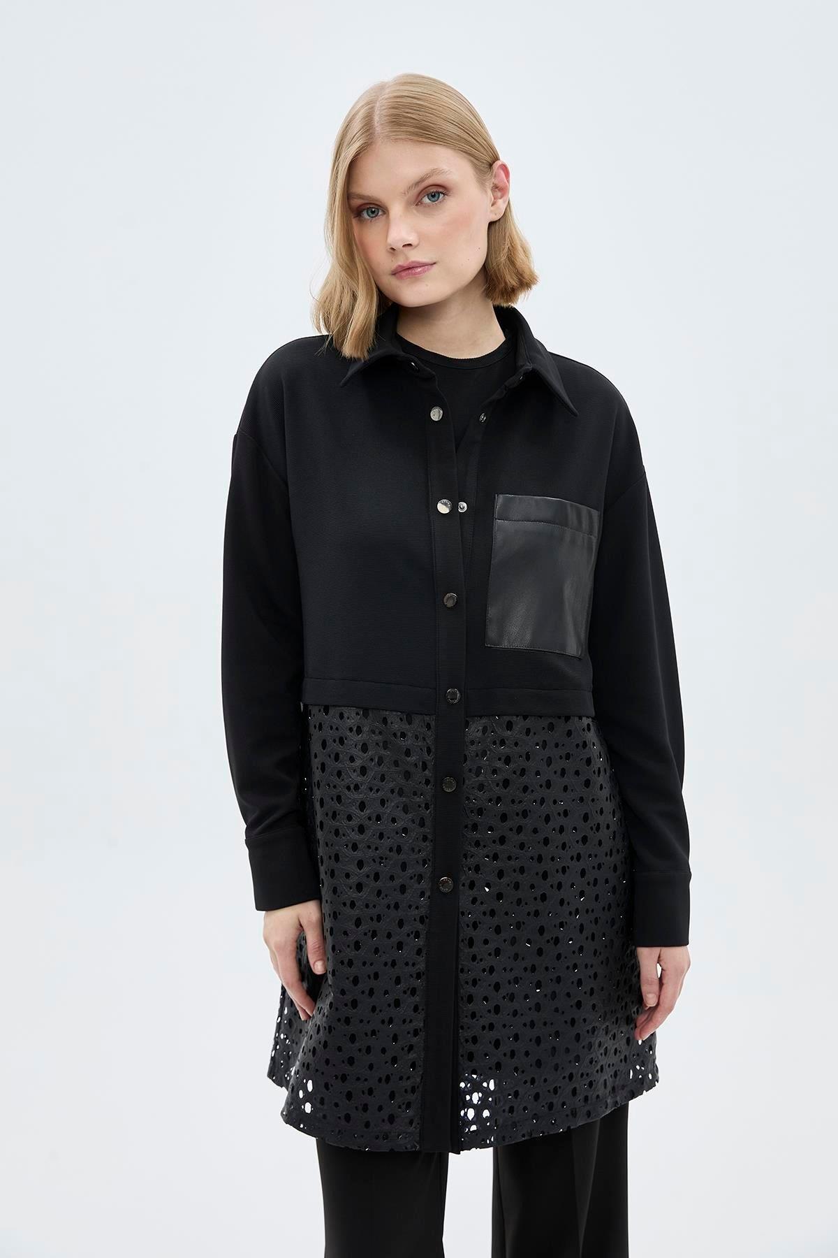 Zühre Güpür ve Deri Detaylı İkili Tunik-1405