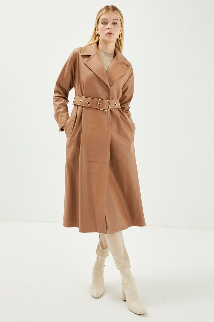 Zühre Kapüşonlu Kemer Detaylı Deri Kap-13302