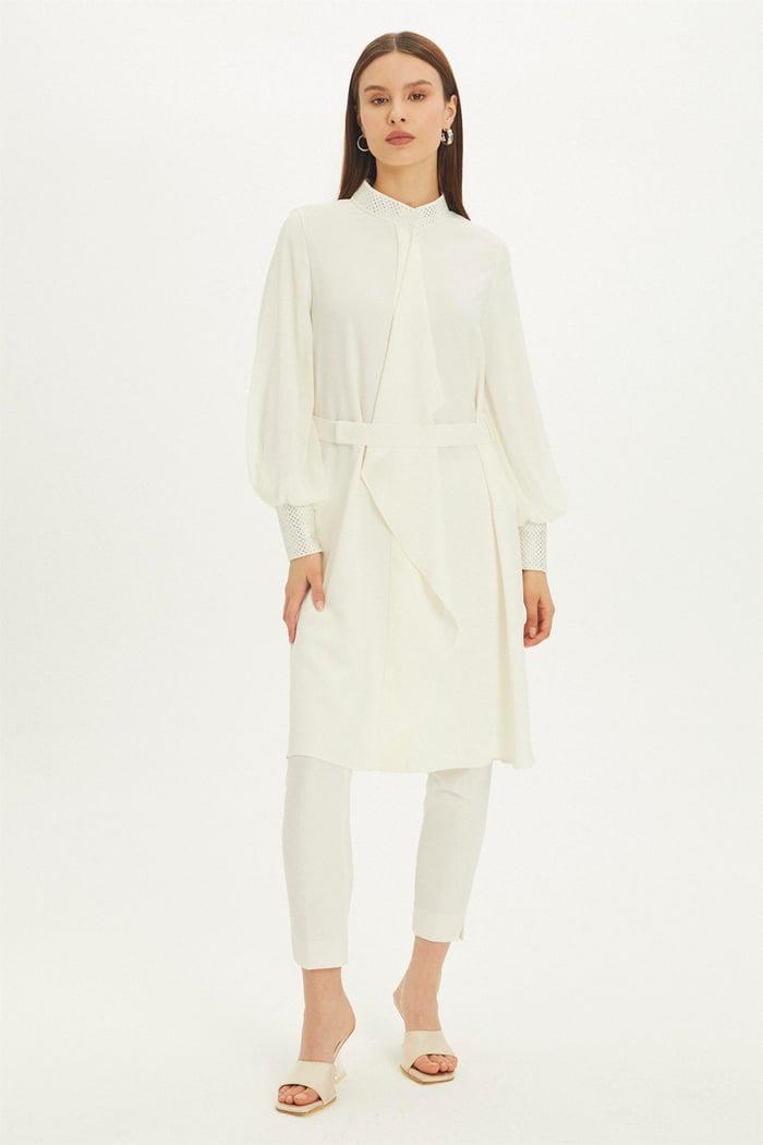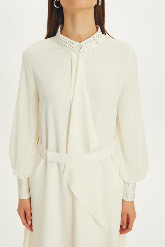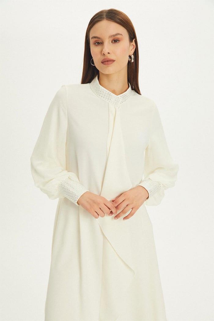 - Ahsen Yaka ve Kol Taş Detaylı Asimetrik Tunik K-6329