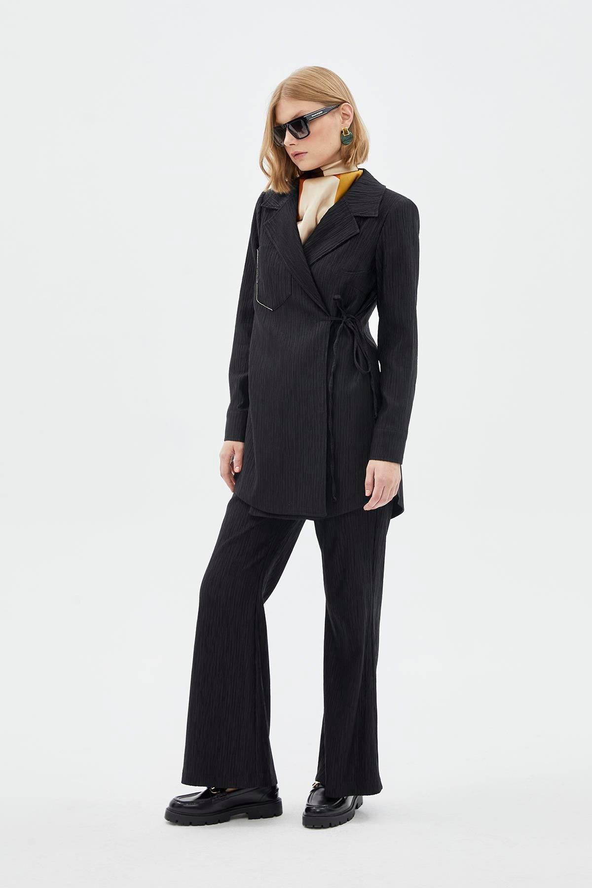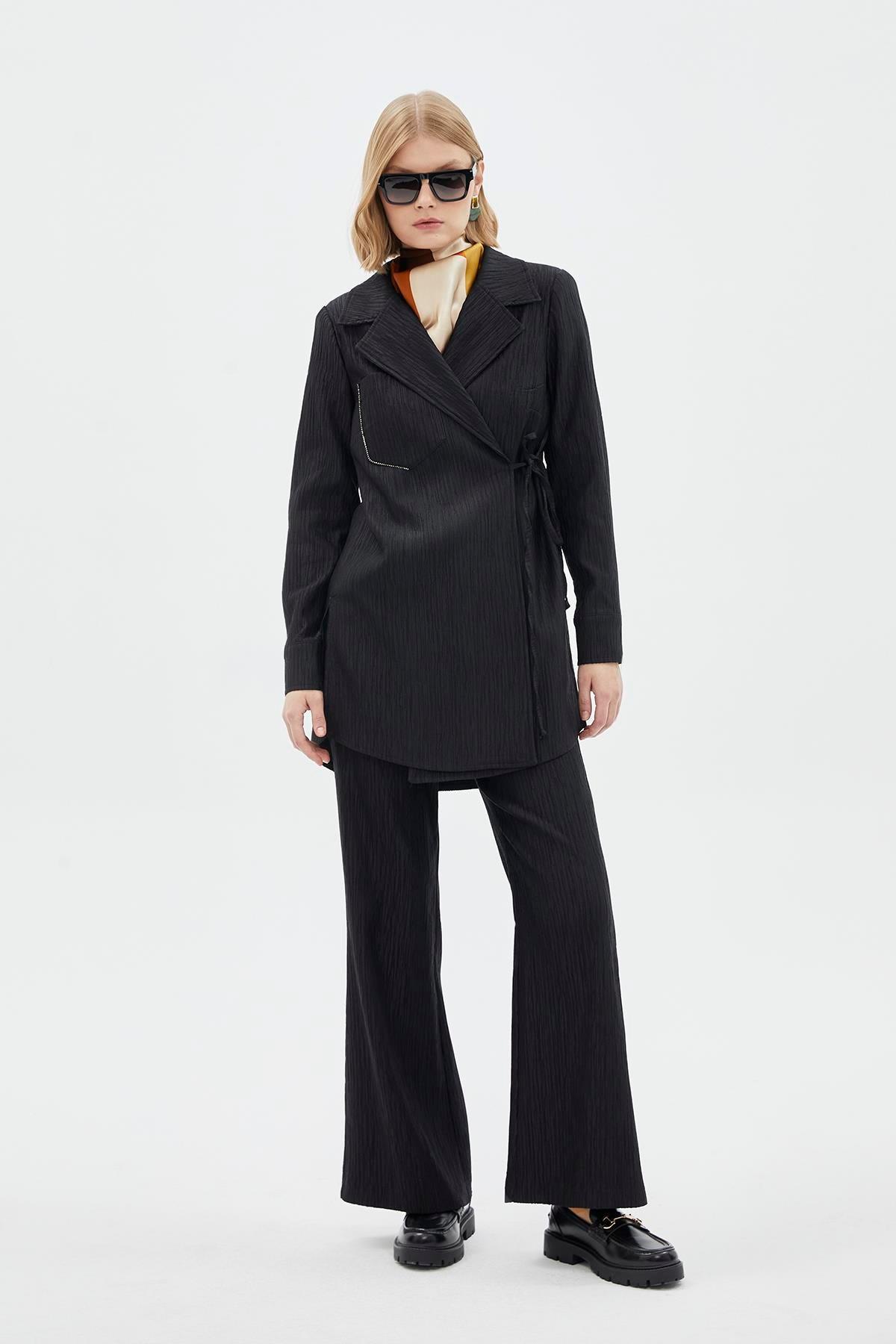 - Yan bağlama detaylı ceket
