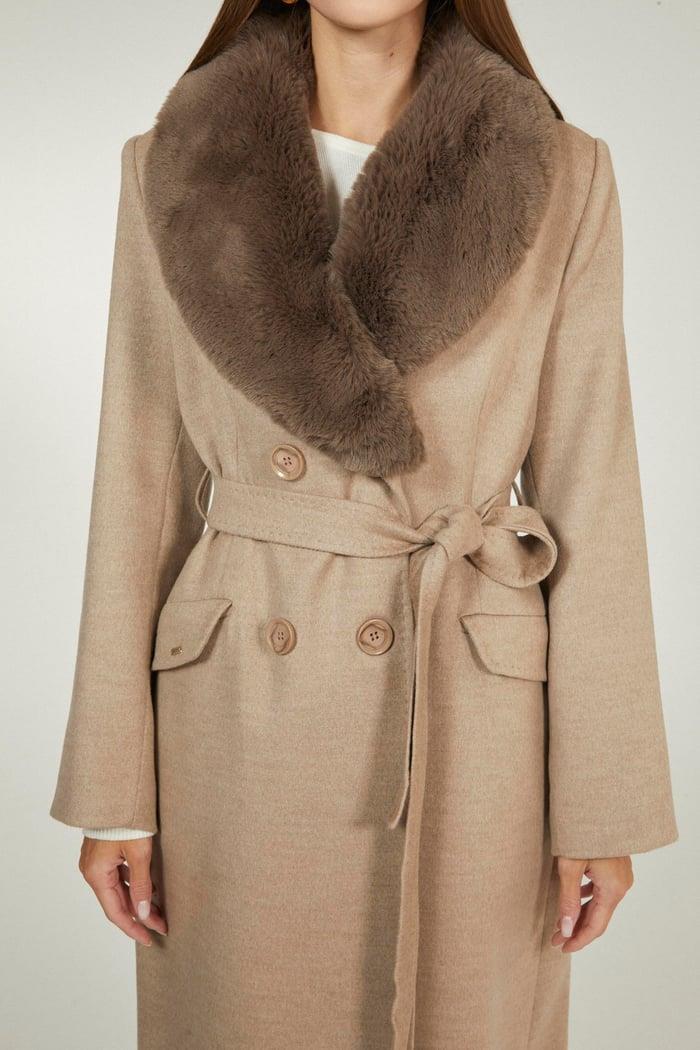 - Zühre Yaka Kürk Detaylı Kaşe Kaban-13114