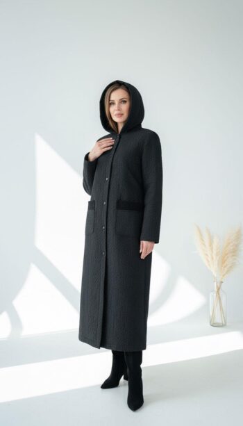 - Desen Triko Kadın Polo Yaka Eteği Keçeli Araboy Yün Kaban-24078