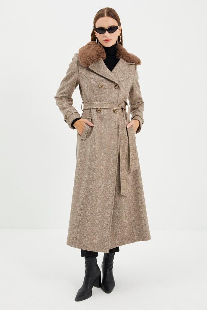 Zühre Yaka Kürk Detaylı Kaşe Kaban-13114