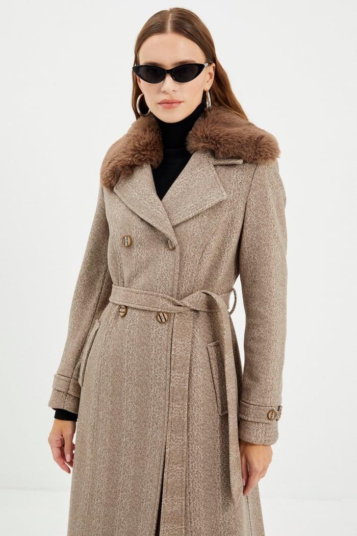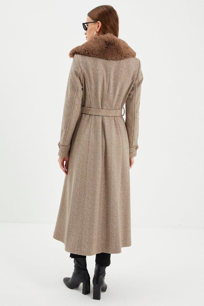 Kürk Detaylı Kruvaze Yaka Vizon Kaşe Kaban 13114 Özellikleri