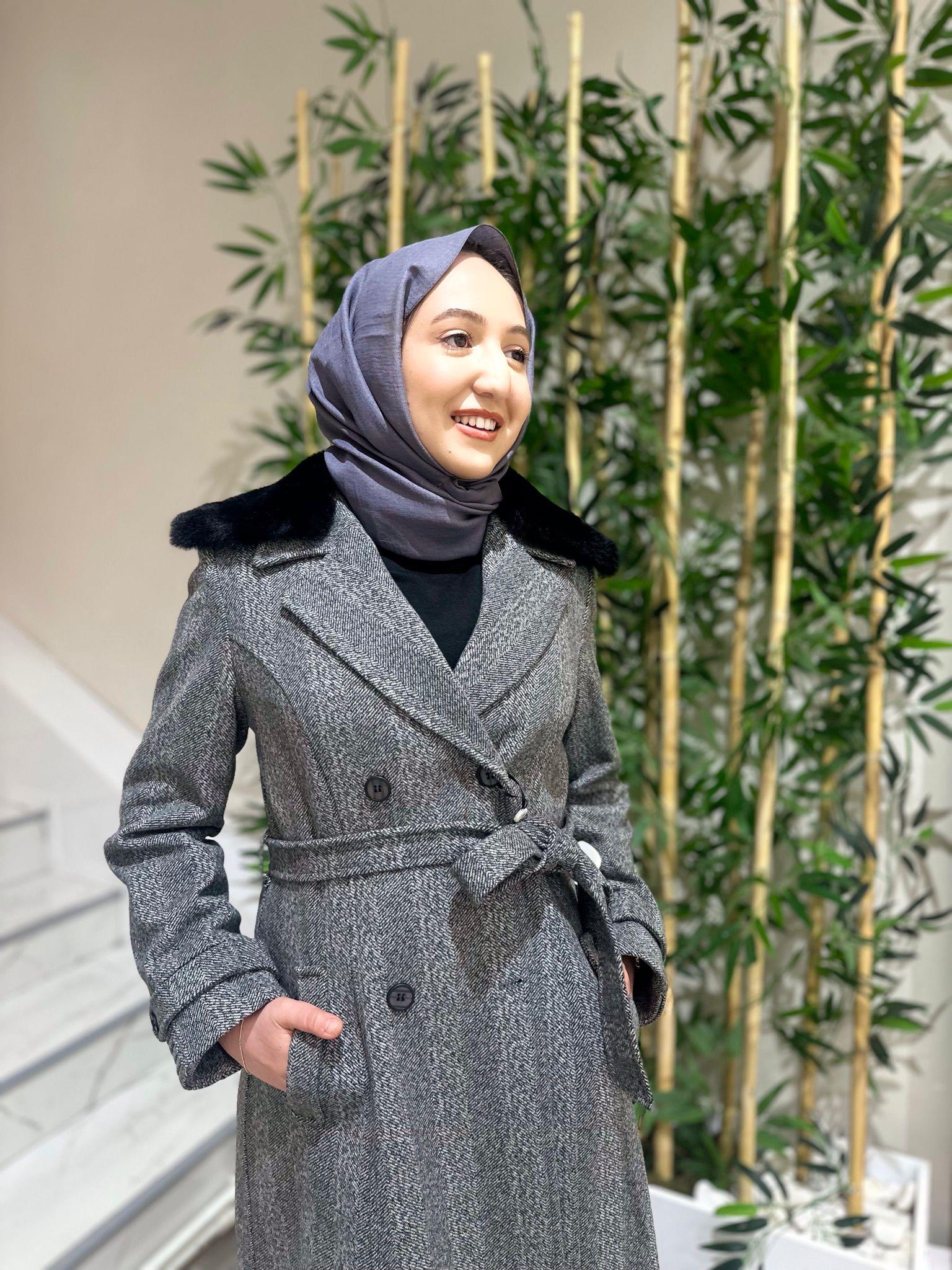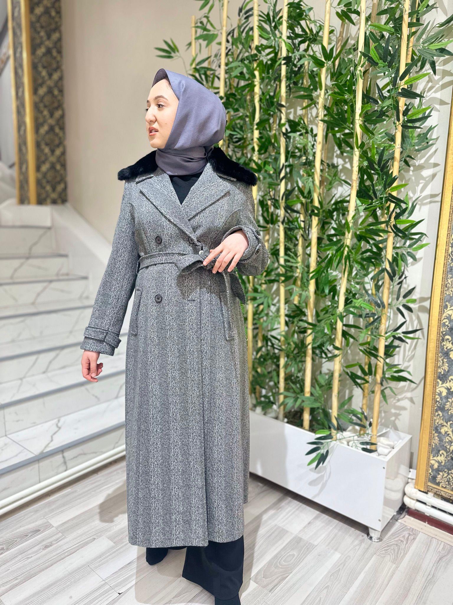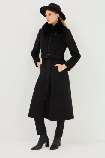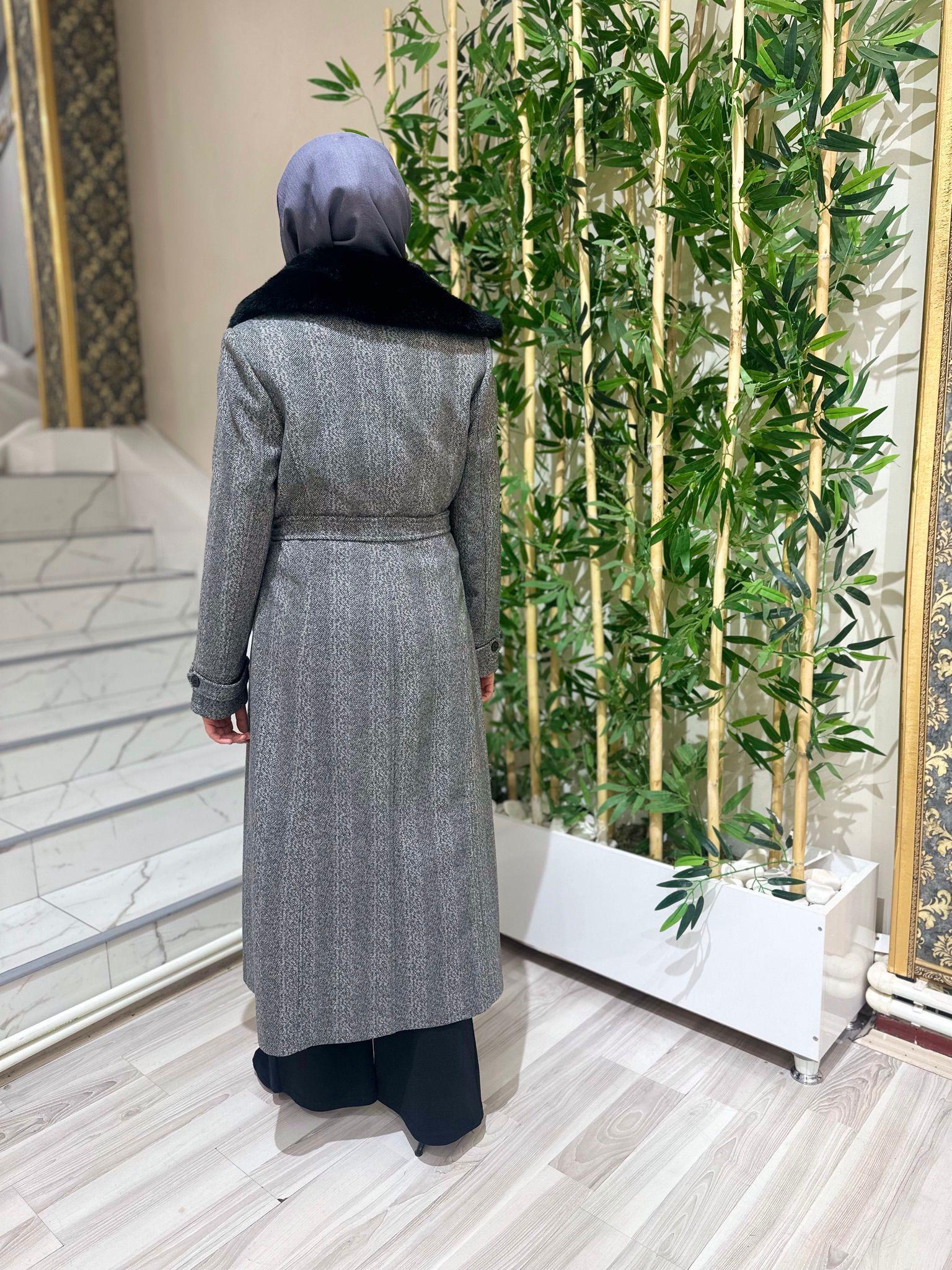 - Zühre Yaka Kürk Detaylı Kaşe Kaban-13114