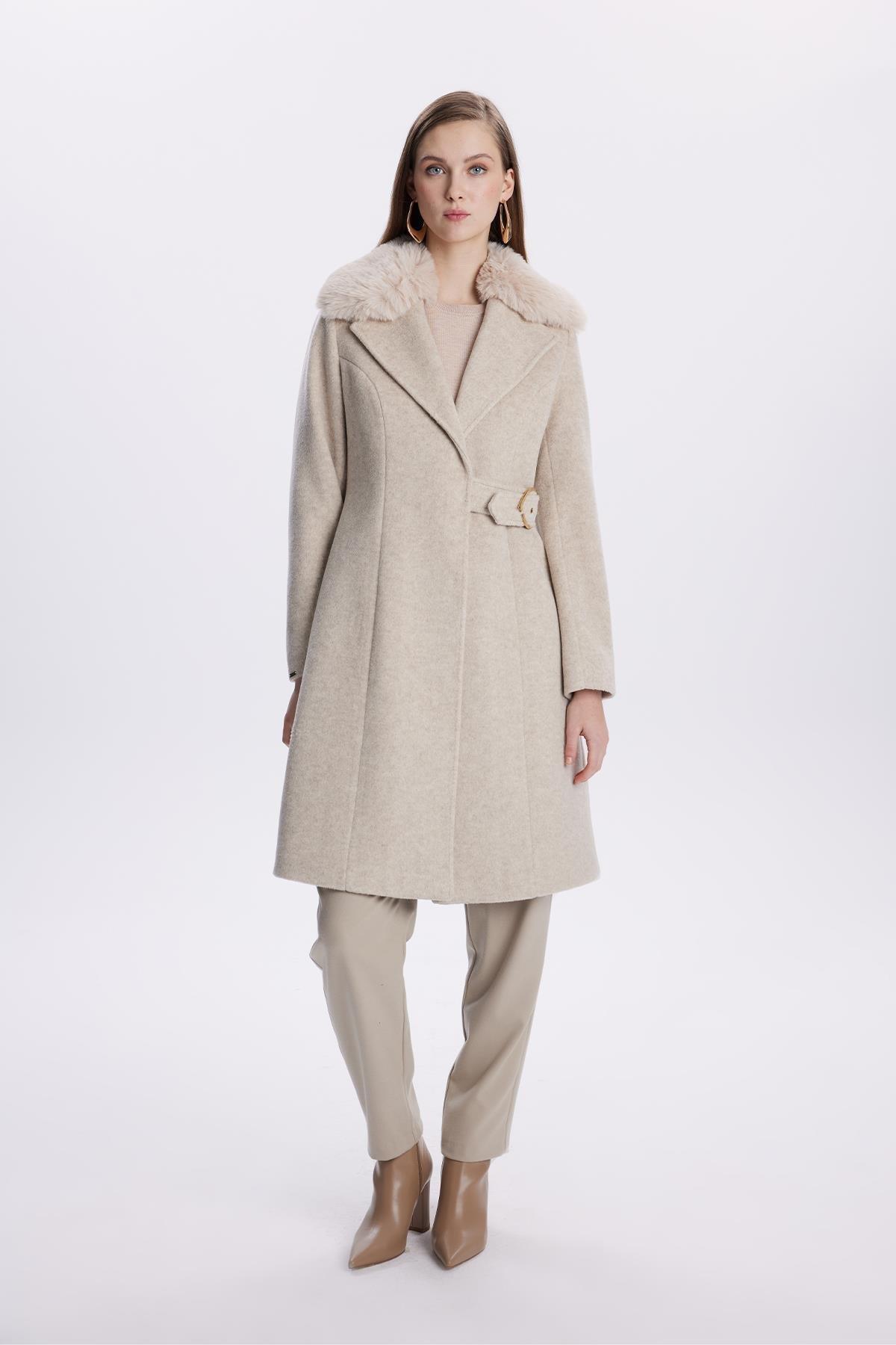 - Zühre Yaka Kürk Detaylı Kaşe Kaban-13114