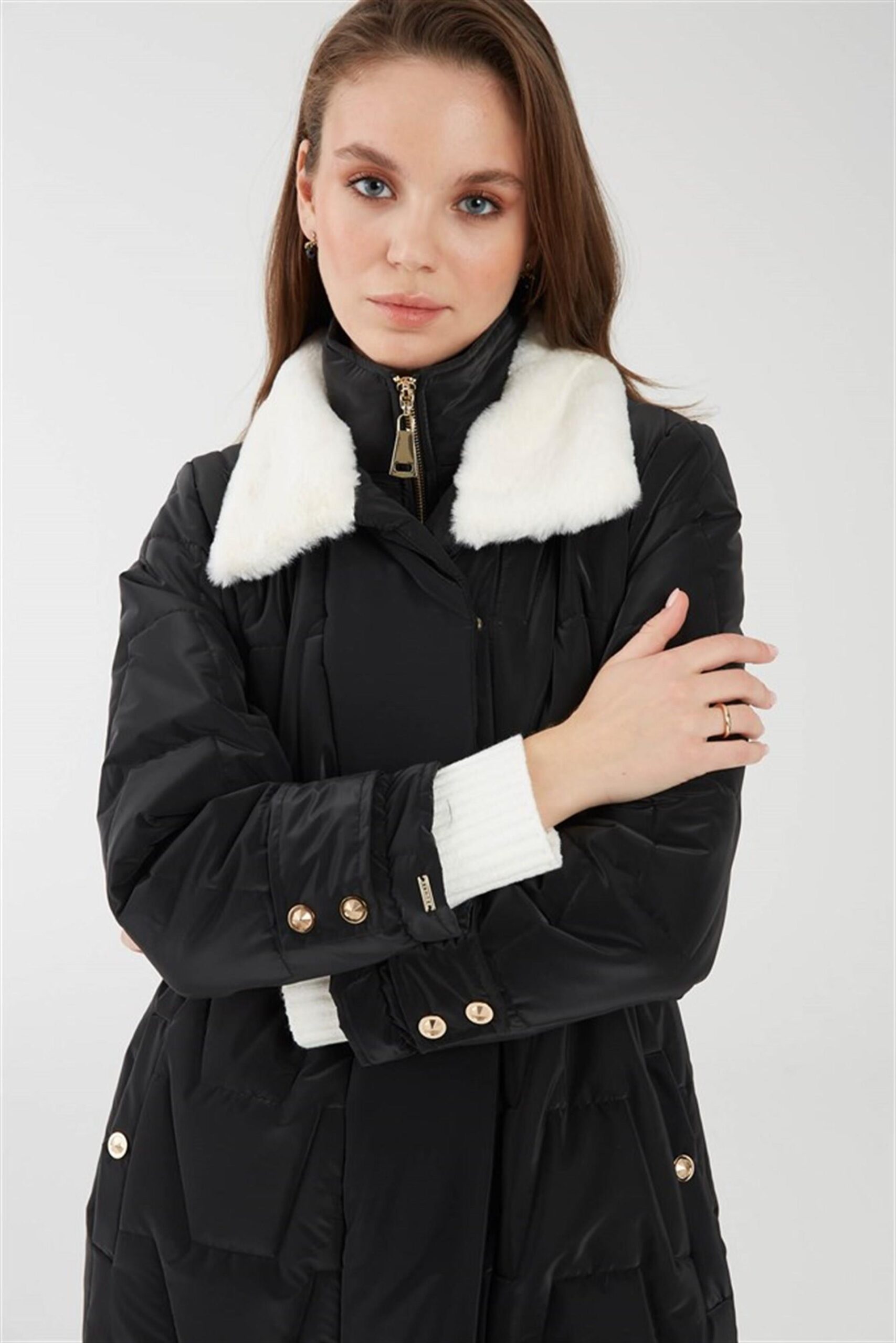 - My312 Yaka ve Kol Kürk Detaylı Kaban-7953